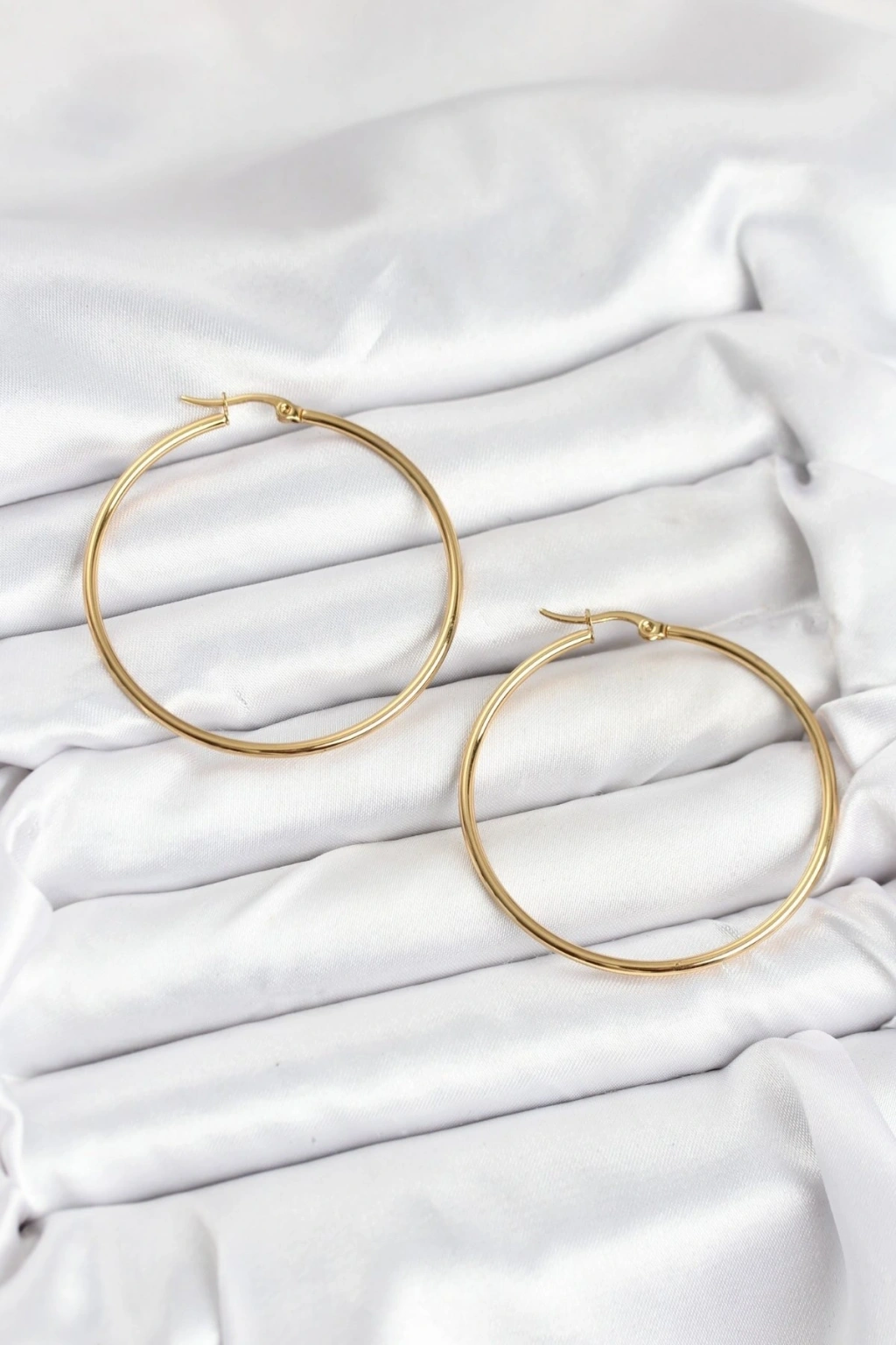 316L Çelik Gold Renk 45 mm Halka Kadın Küpe