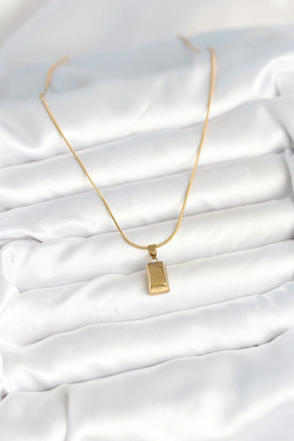 316L Çelik Gold Renk Mini Külçe Altın Model Kolye