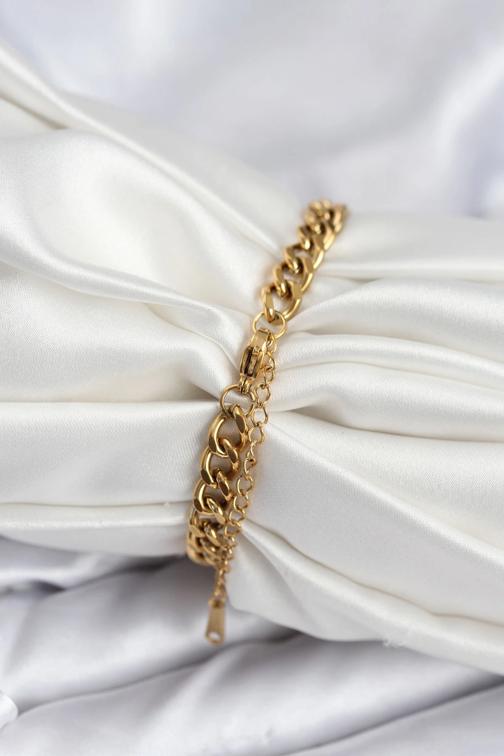 316L Çelik Gold Renk Ezme Zincir Model Kadın Kelepçe Bileklik