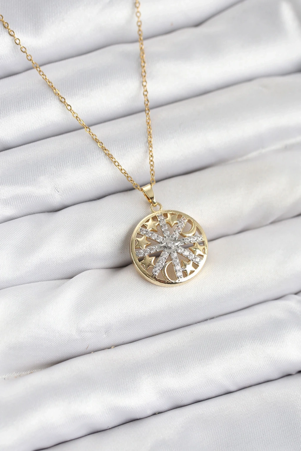 316L Çelik Zincir Gold Renk Kutup Yıldızı Model Zirkon Taşlı Kadın Kolye
