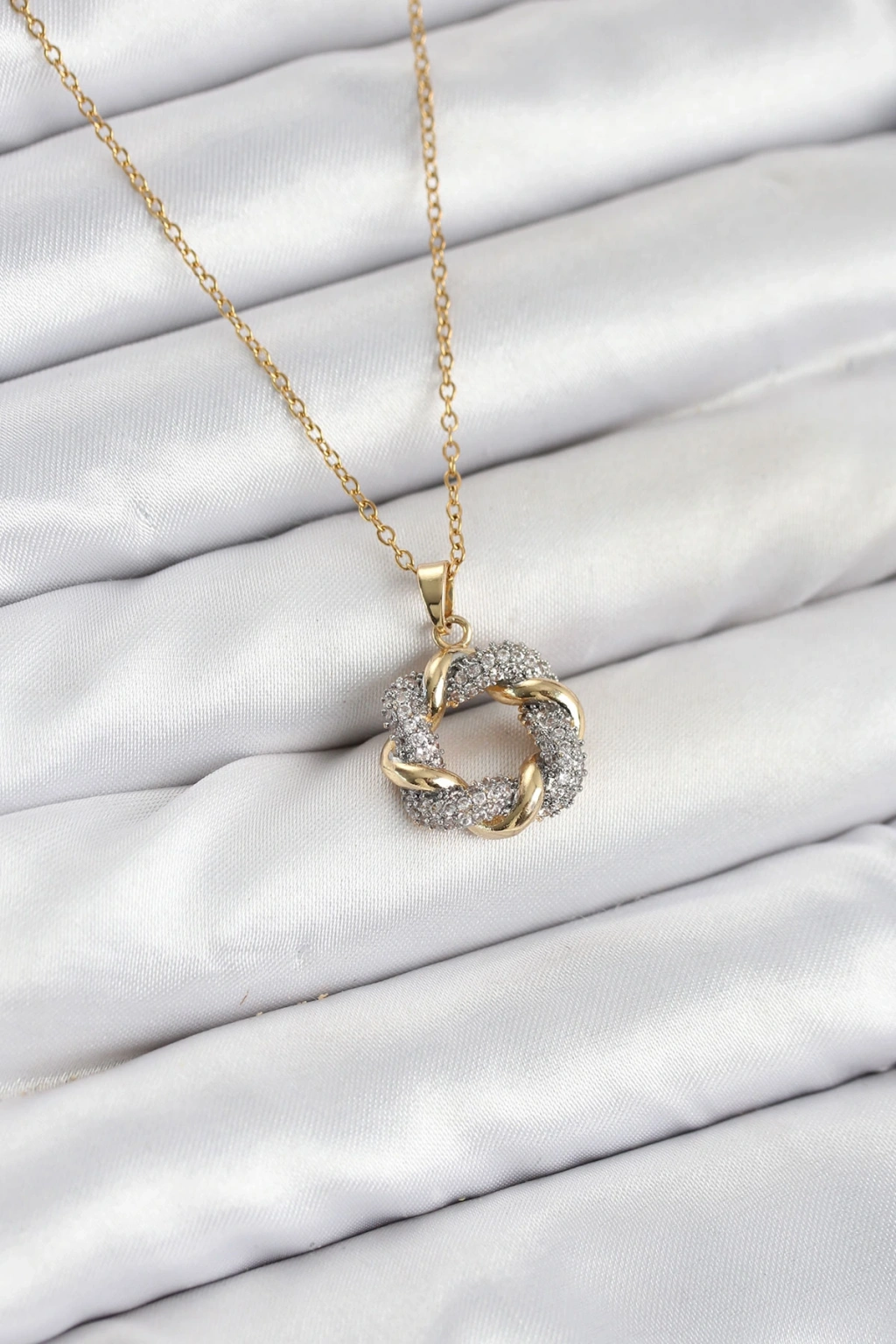 316L Çelik Zincir Gold Renk Zirkon Taşlı Sarmal Model Kadın Kolye