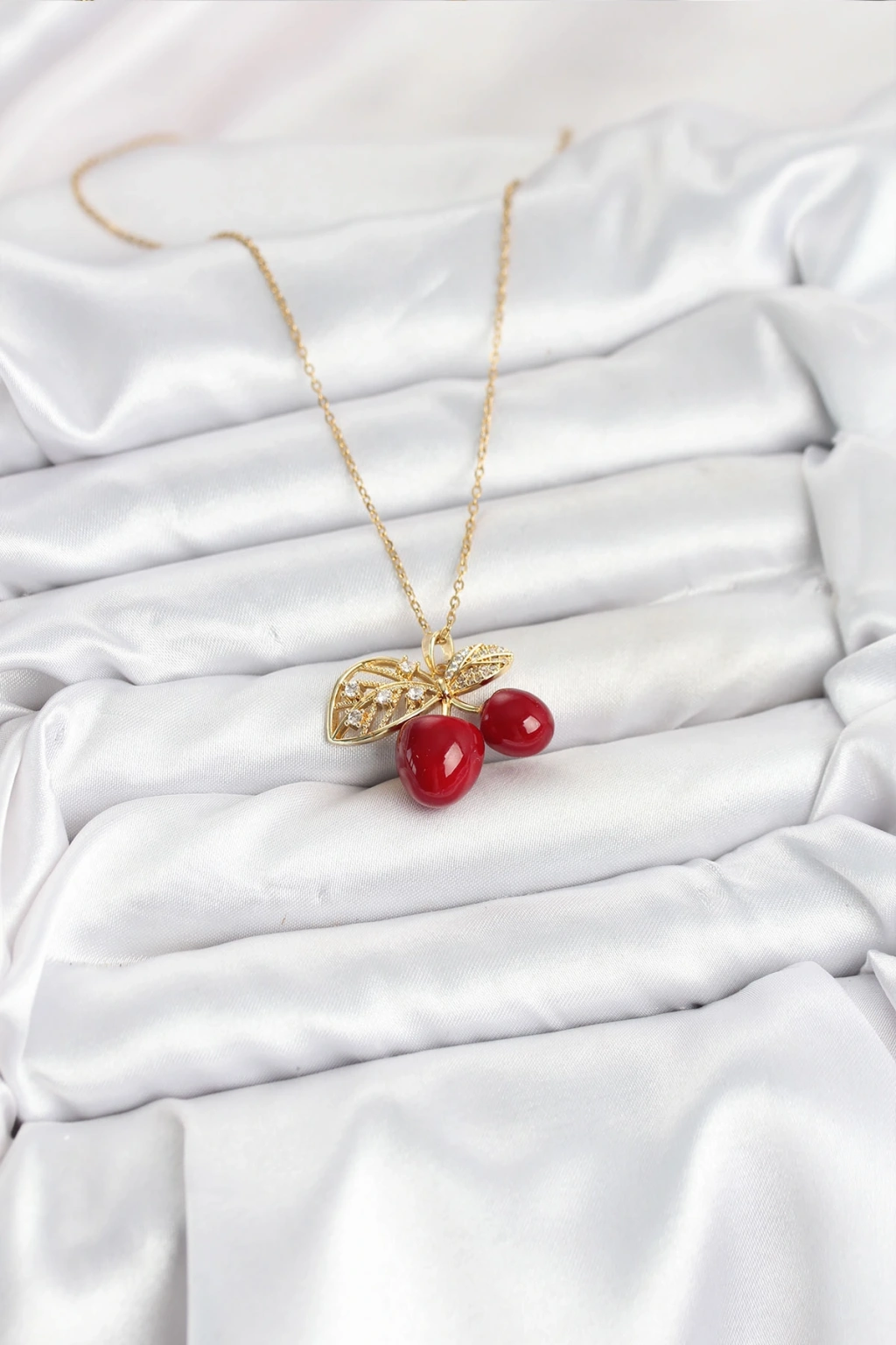316L Çelik Zincir Gold Renk Kiraz Model Kadın Kolye