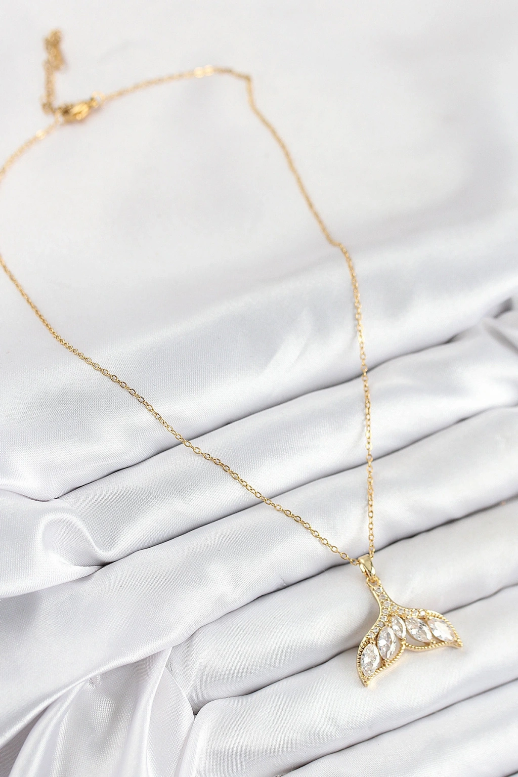 316L Çelik Zirkon Taşlı Balık Kuyruğu Model Gold Renk Kadın Kolye