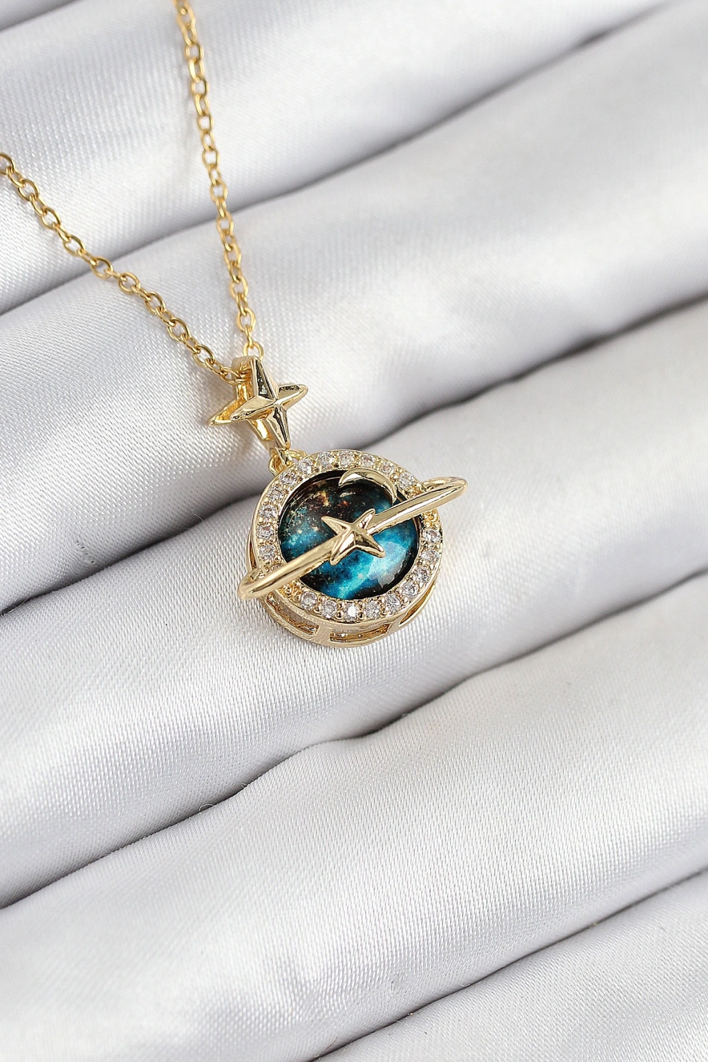 316L Çelik Zirkon Taşlı Gezegen Model Gold Renk Kadın Kolye