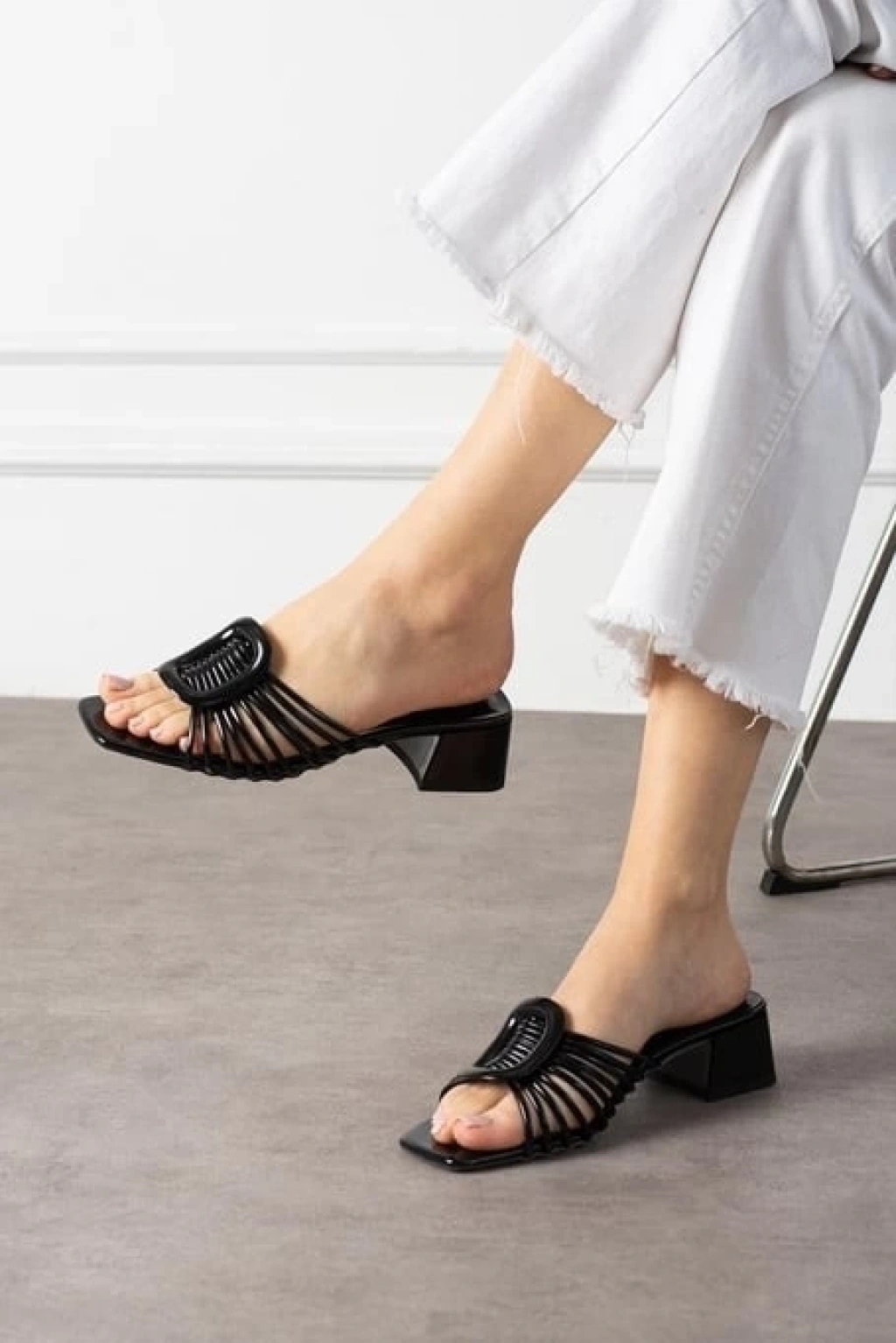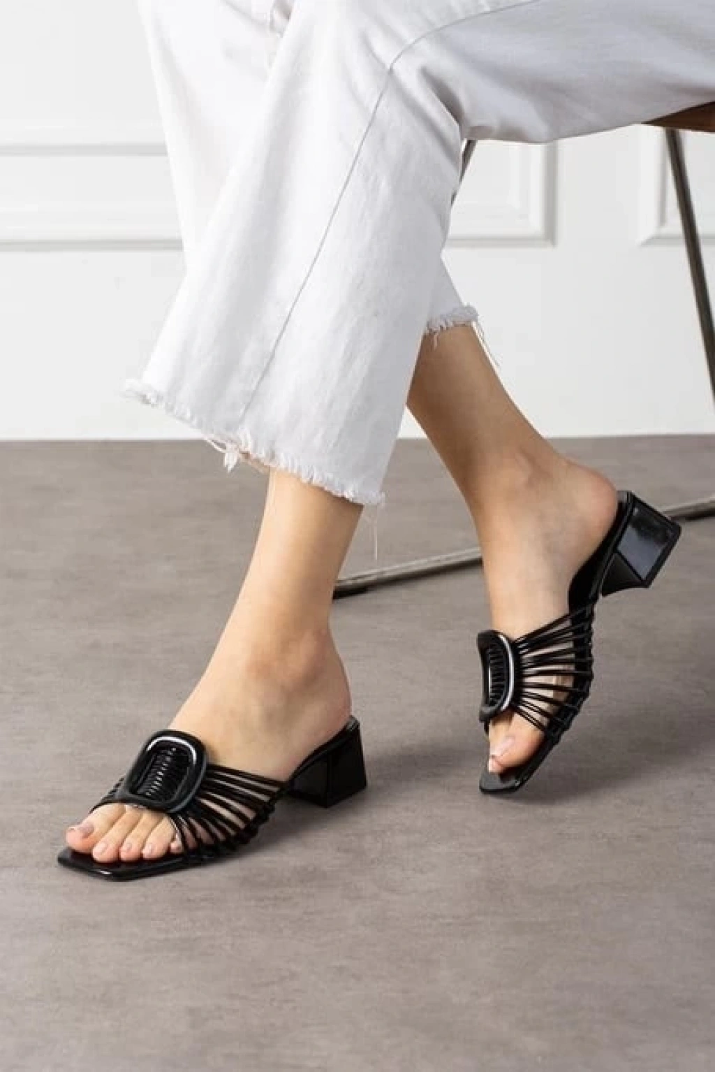 Caren Siyah Cilt Topuklu Terlik