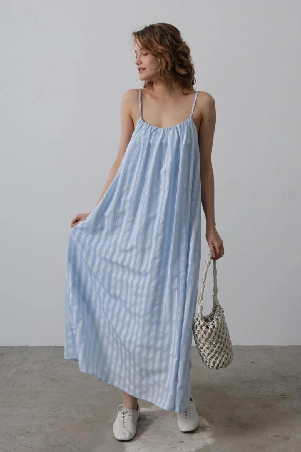 Askılı Çizgi Desen Elbise - Bebe Mavisi