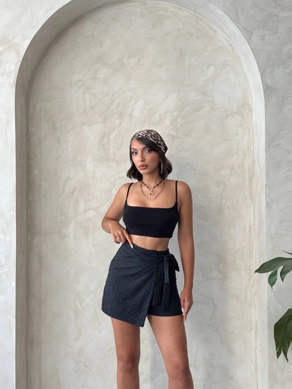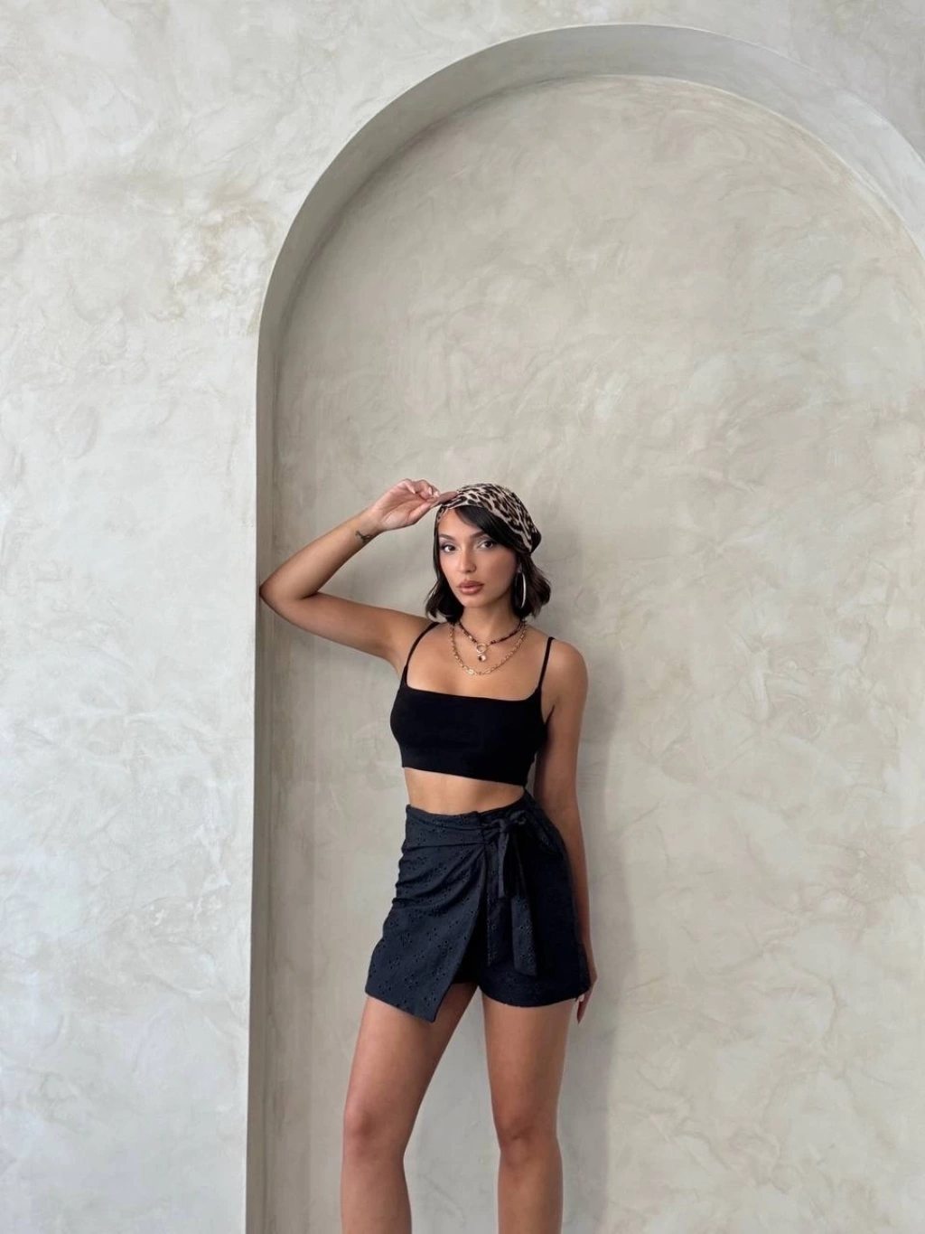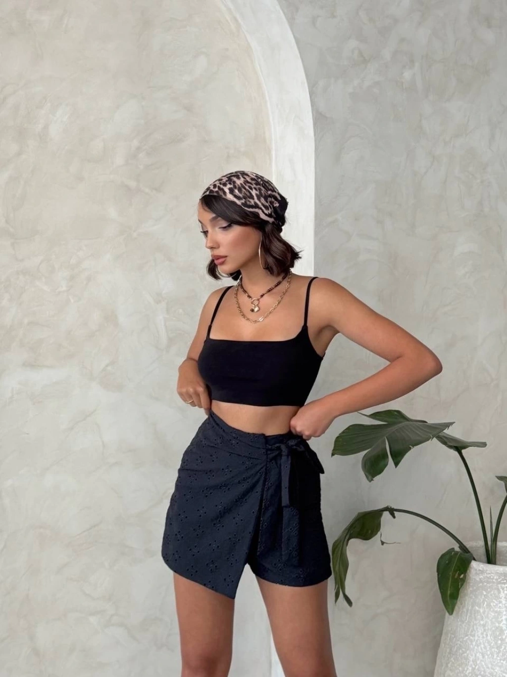 Müslin kumaş şort bağcıklı siyah pt