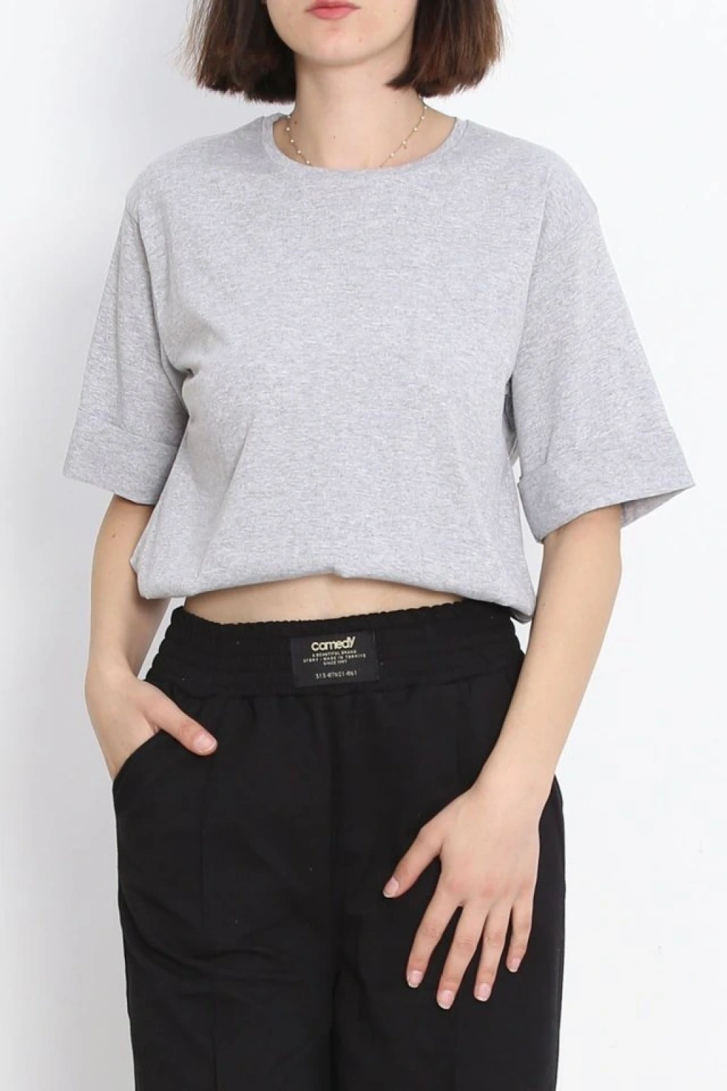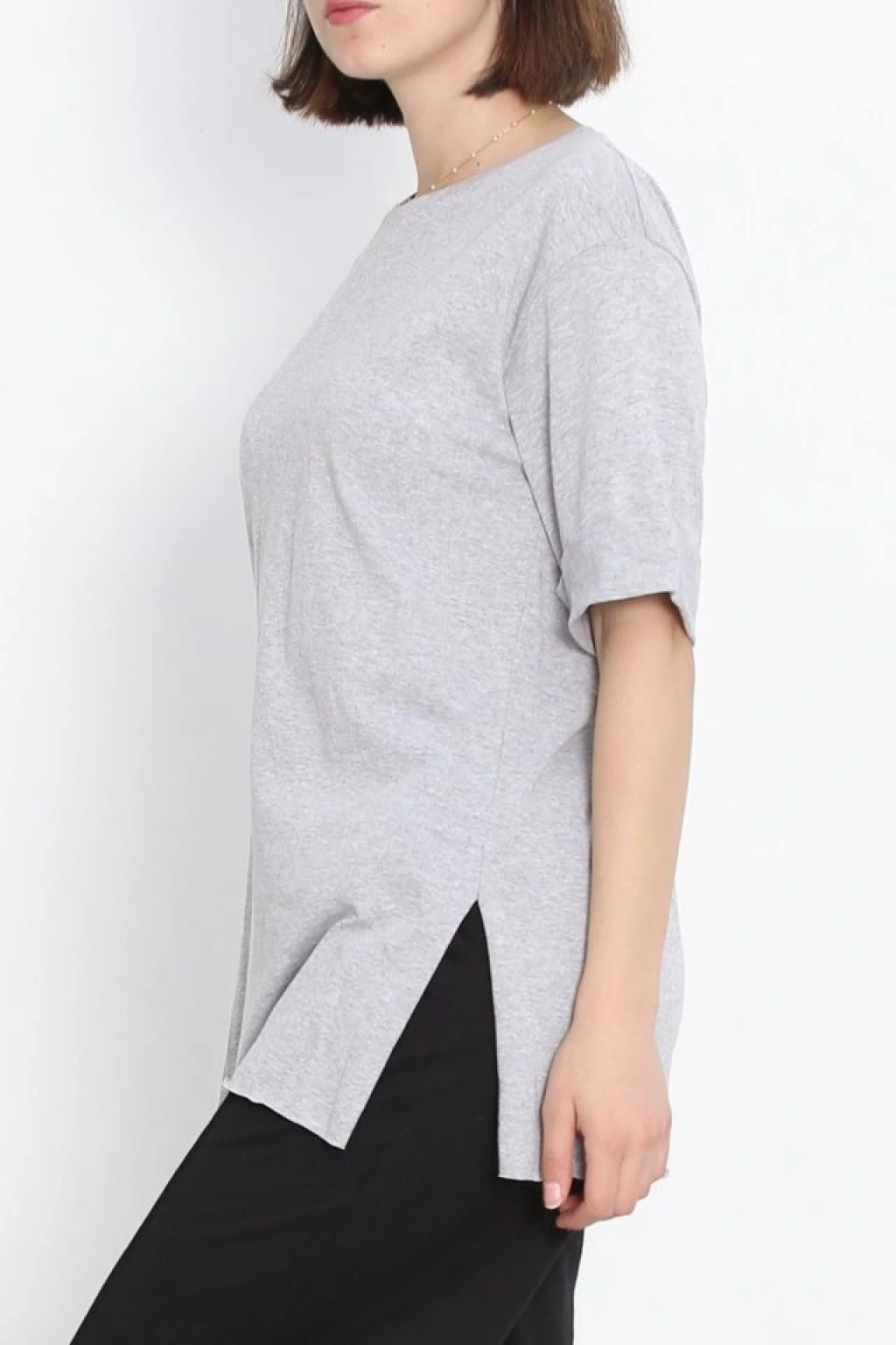 Büyük Beden Duble Kol Tişört Gri