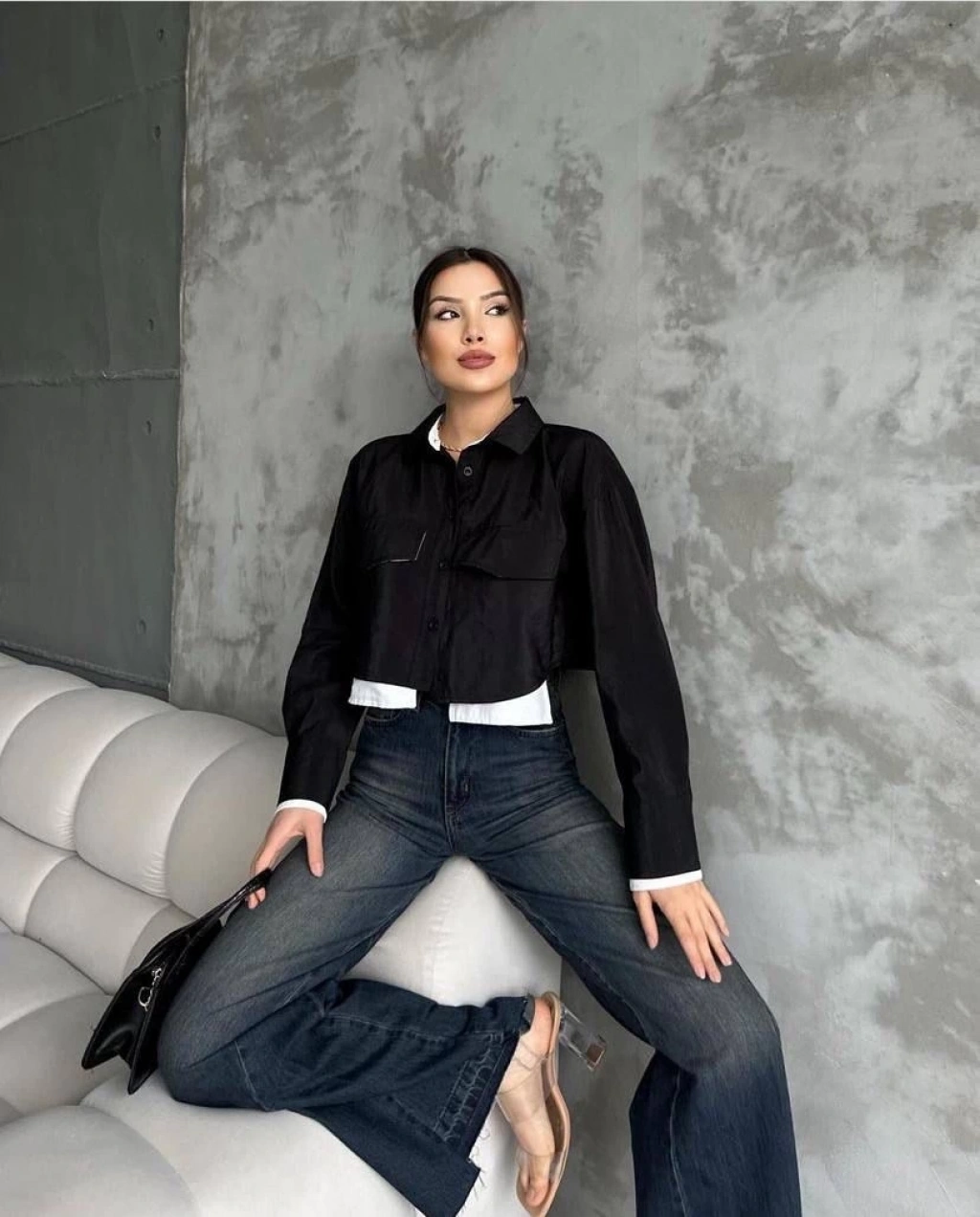 Yanı kemer detaylı crop gömlek siyah s4009