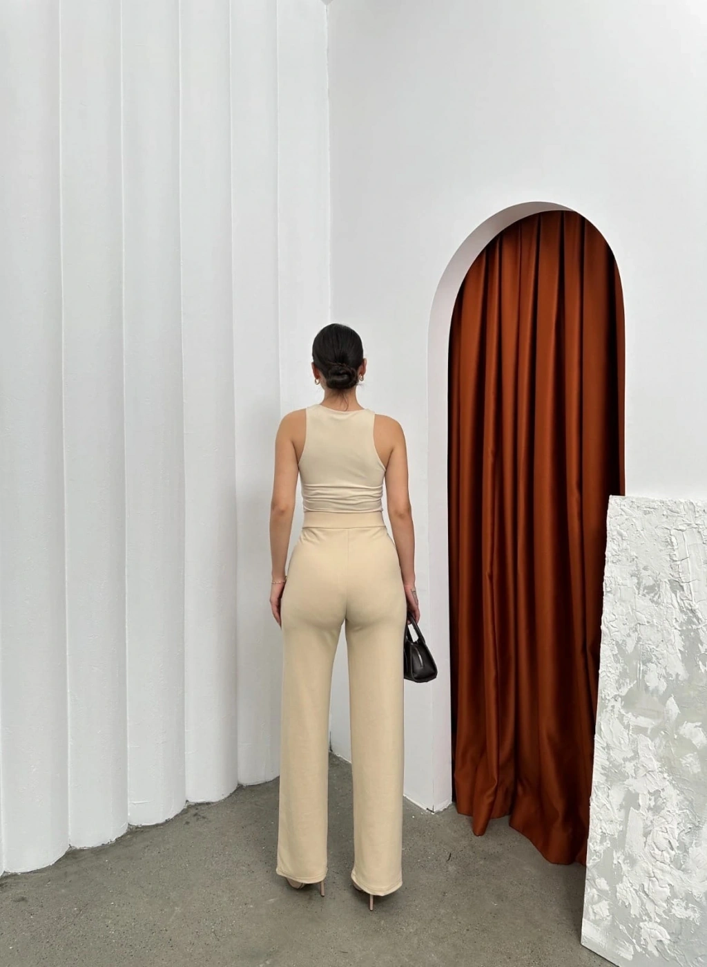 Cırtlı pantolon krep bej pt