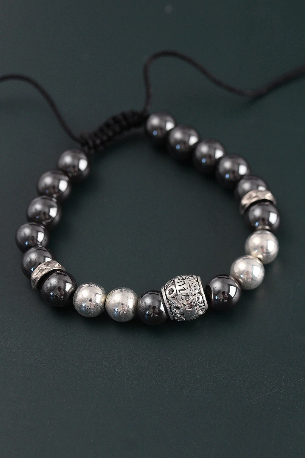 Doğal Taş Family Model Gümüş Ve Füme Renk Asansörlü Erkek Bileklik