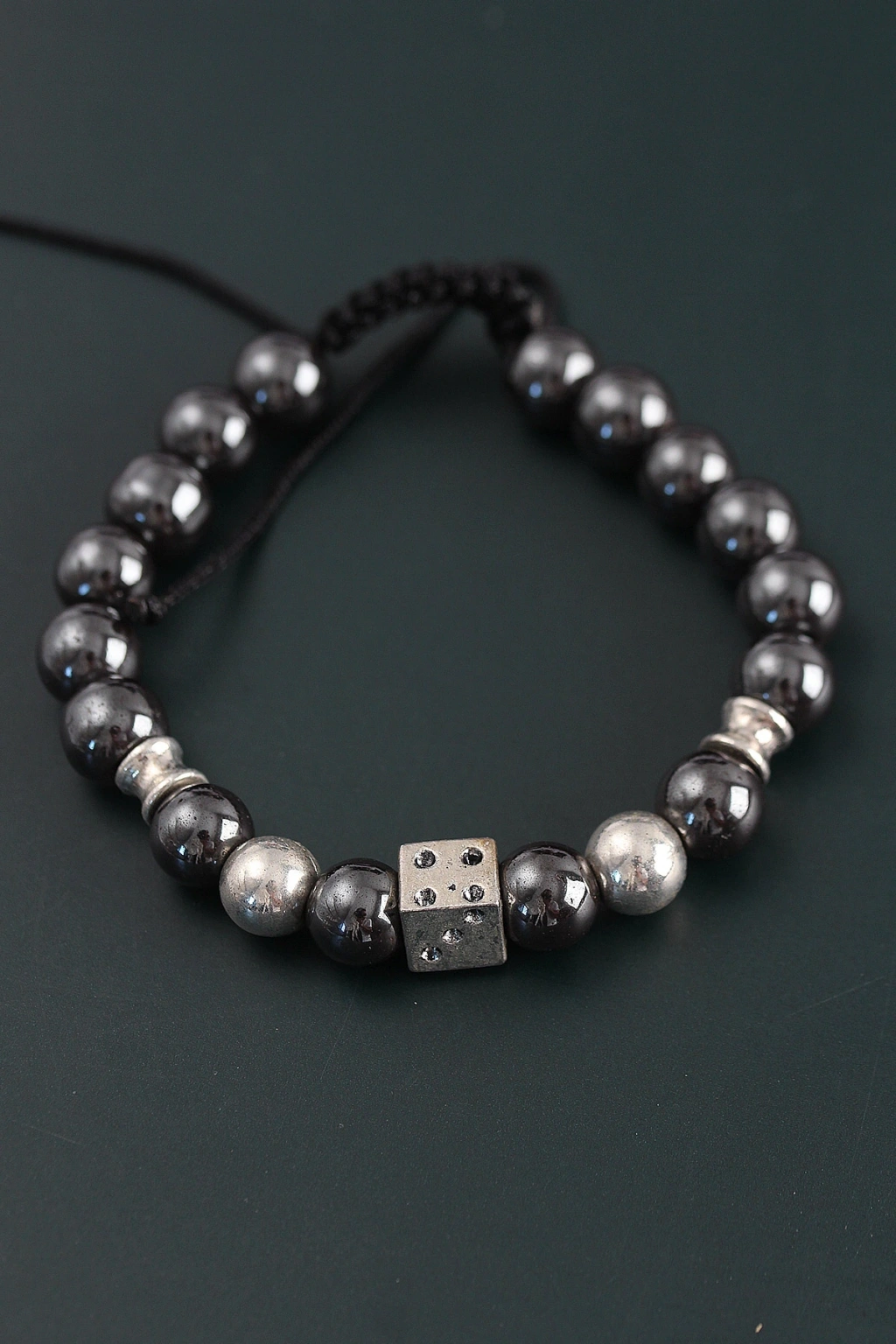 Doğal Taş Zar Model Gümüş Ve Füme Renk Asansörlü Erkek Bileklik