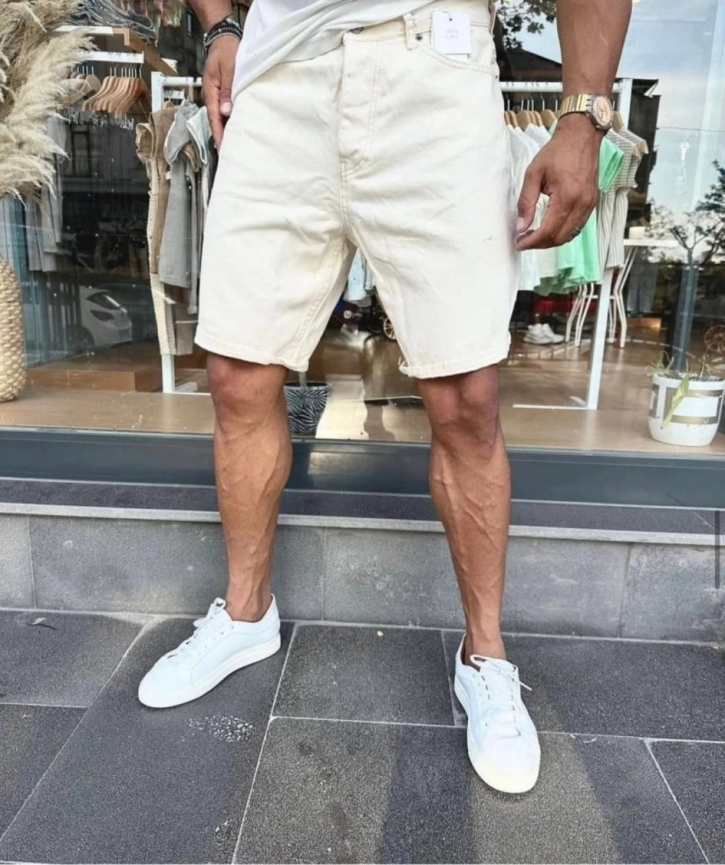 Erkek Beyaz Mom Kalıp Kot Şort
