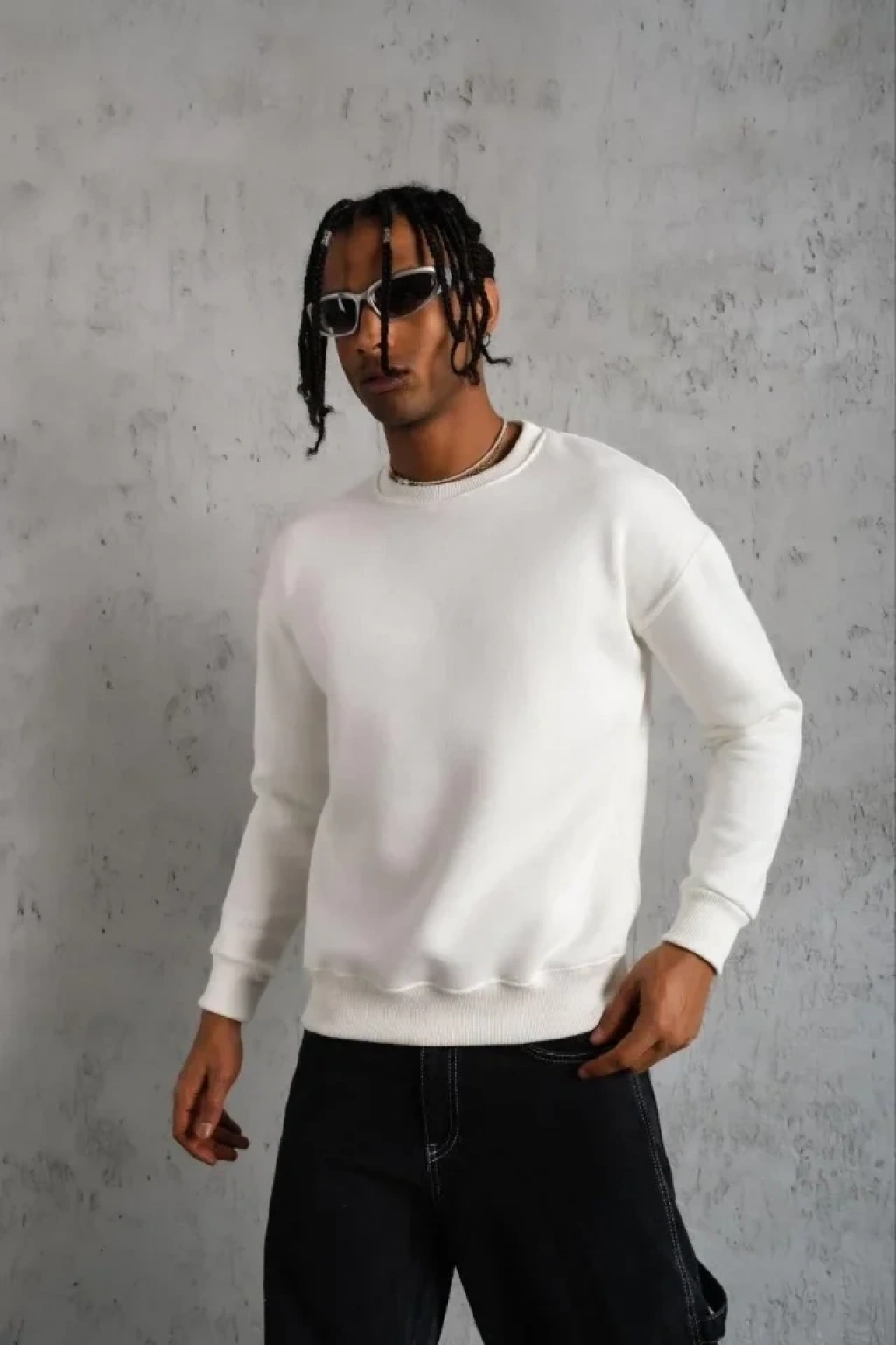 Erkek Düz Bisiklet Yaka Sweat - Beyaz