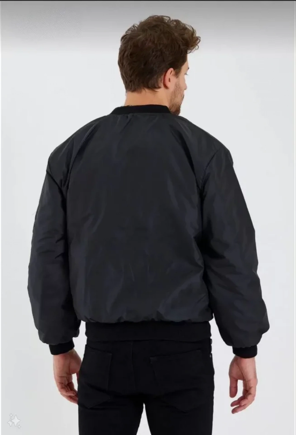Erkek Bomber Mont Ceket – Su İtici Kumaş, Kapitone Astarlı, Fermuarlı, Kışlık - Siyah