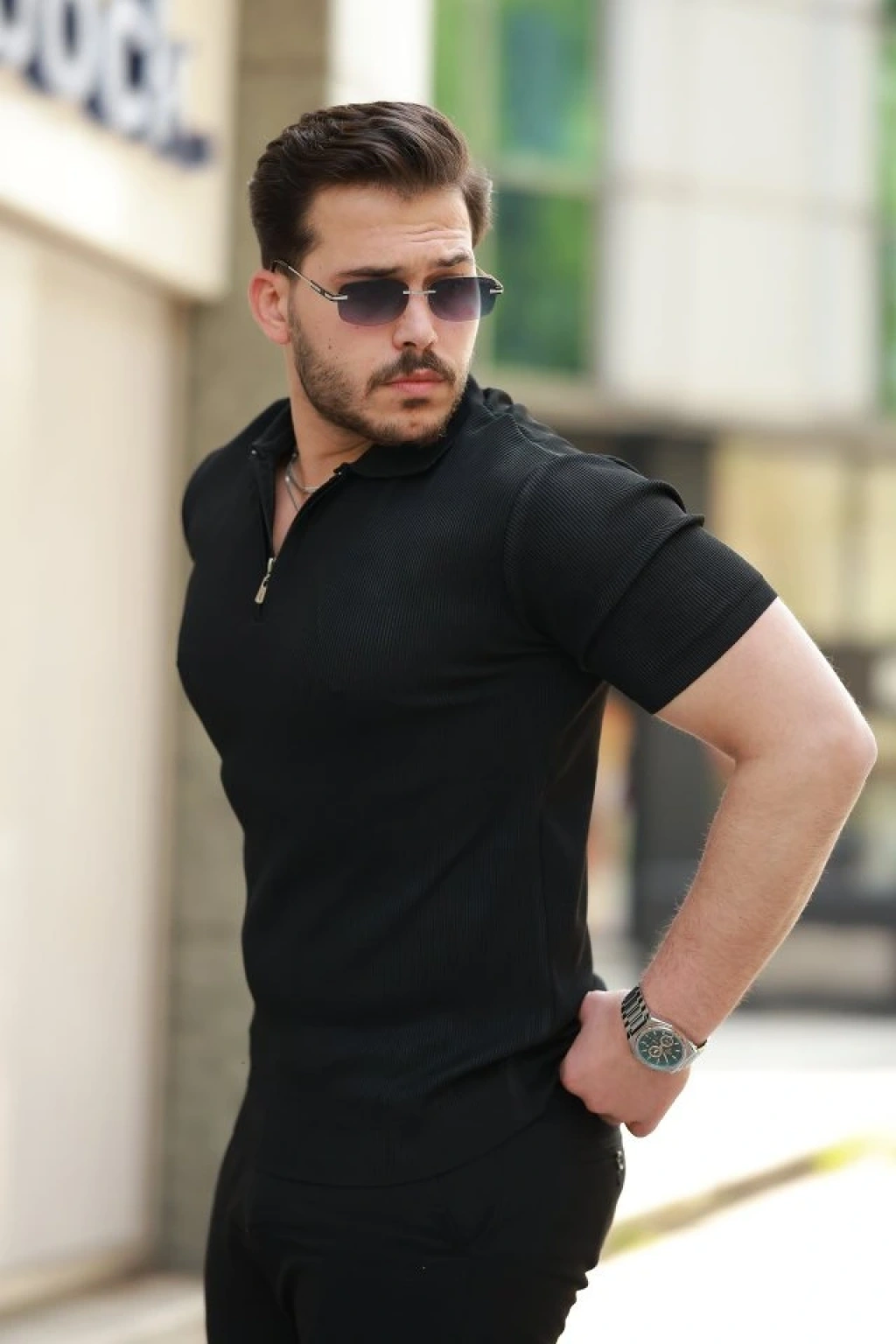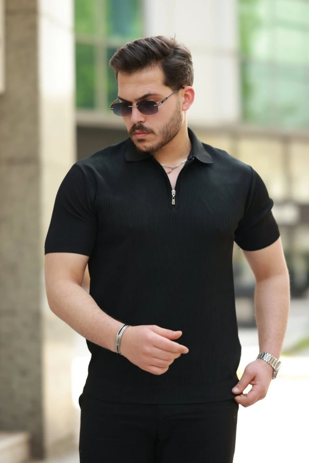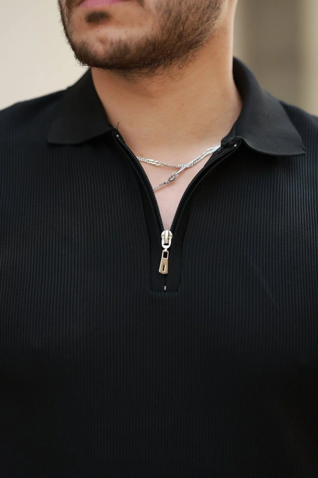 Erkek Fermuarlı Yakalı Kısa Kollu Tshirt