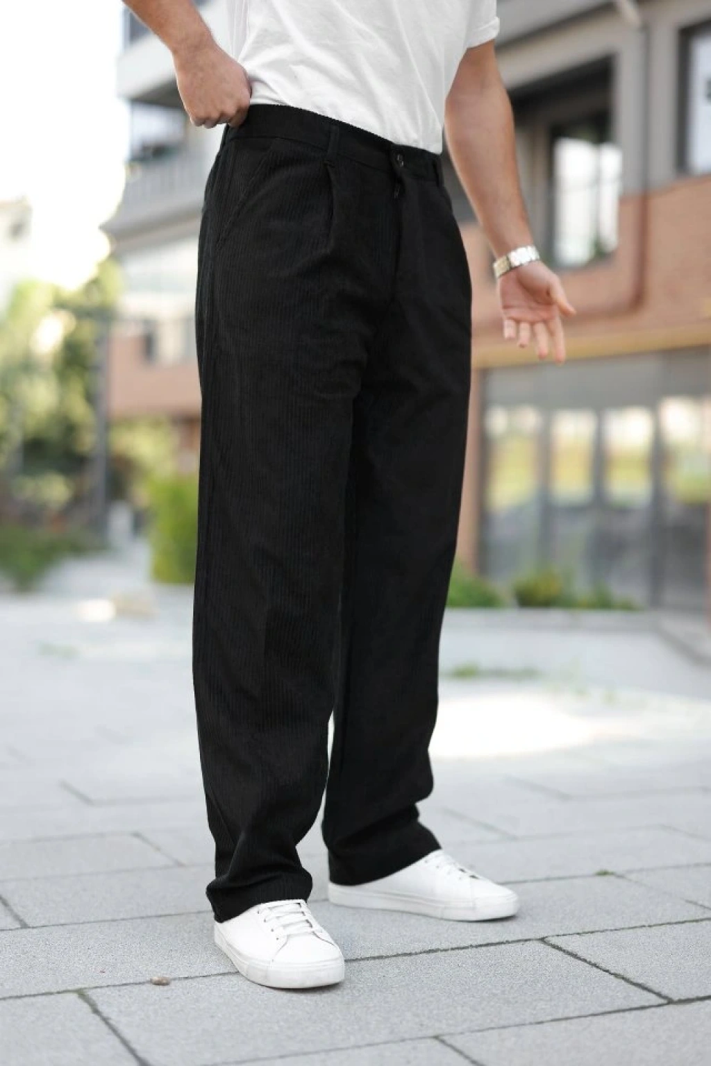 Kadife Oversize Takım – Gömlek Ve Pantolon İkili Set Füme Corduroy Şıklığı, Rahat Ve Zarif Duruş Yumuşak Dokulu Kadife Kumaş, Düğmeli Gömlek Üst Ve Lastikli Pantolon Alt Parça Ile Gün Boyu Konfor- Siyah