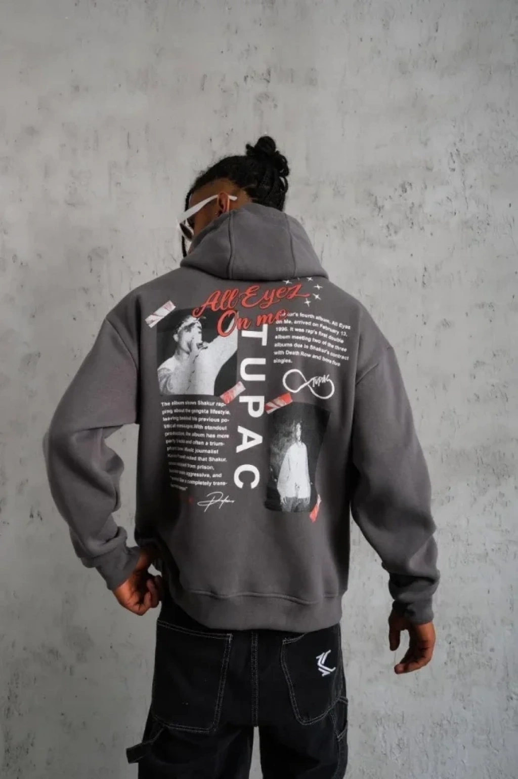 Erkek Ön Arka Baskılı Kapşonlu Sweat - Gri