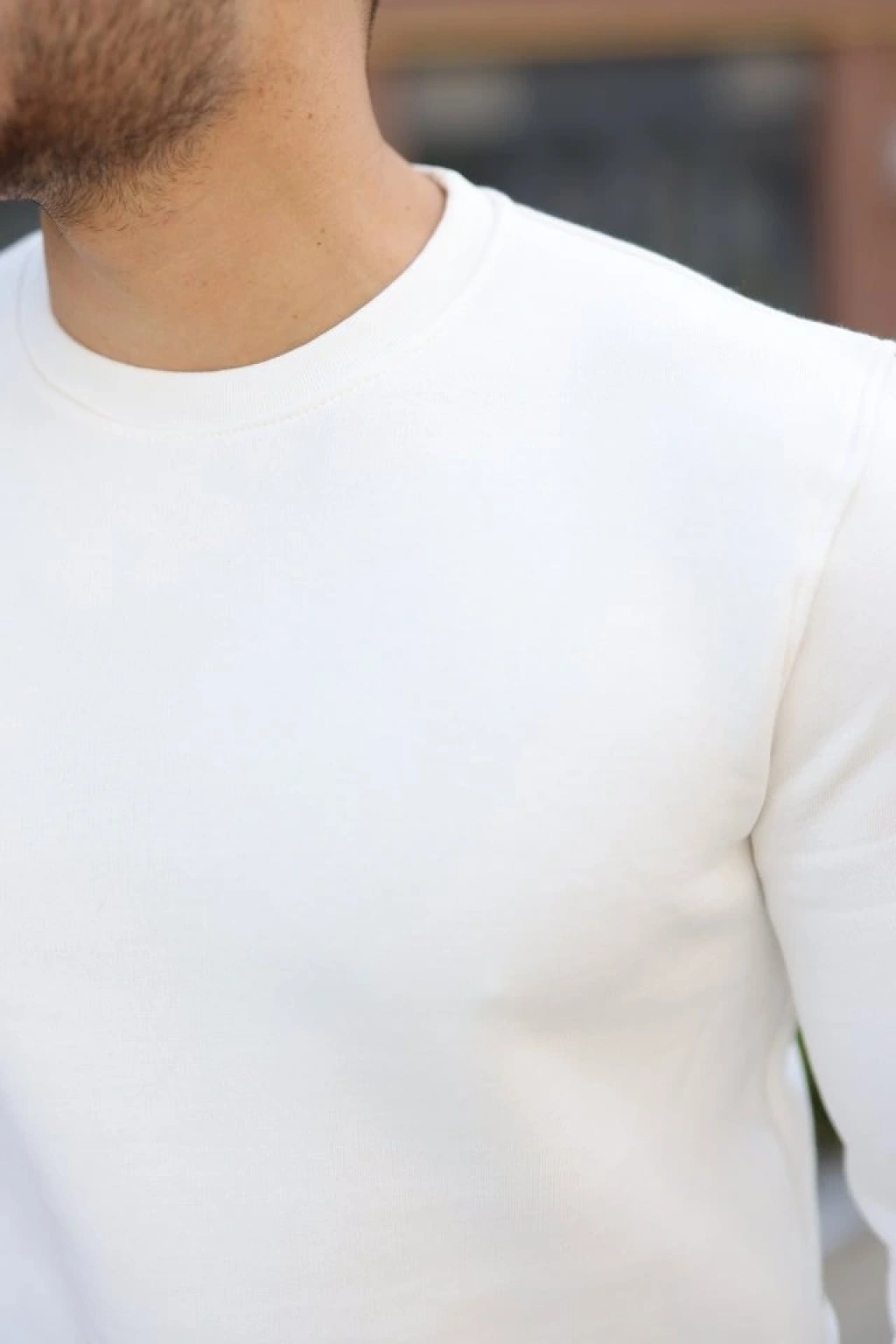 Erkek Oversize Üç İplik Kapüşonlu Sweatshirt – Beyaz Ön Baskılı, Kanguru Cepli, Rahat Kalıp, İçi Pamuklu Model