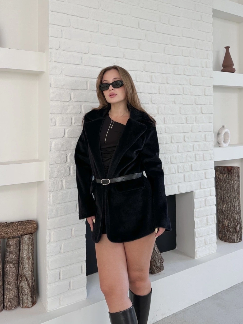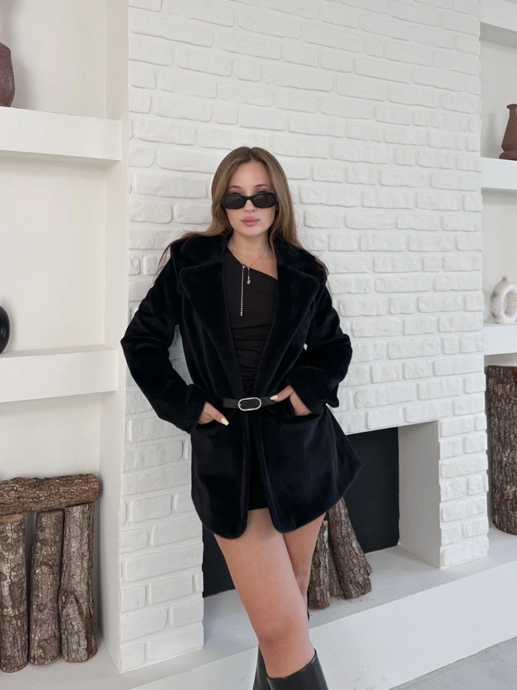 Kalpli peluş ceket içi astarlı siyahbeyaz