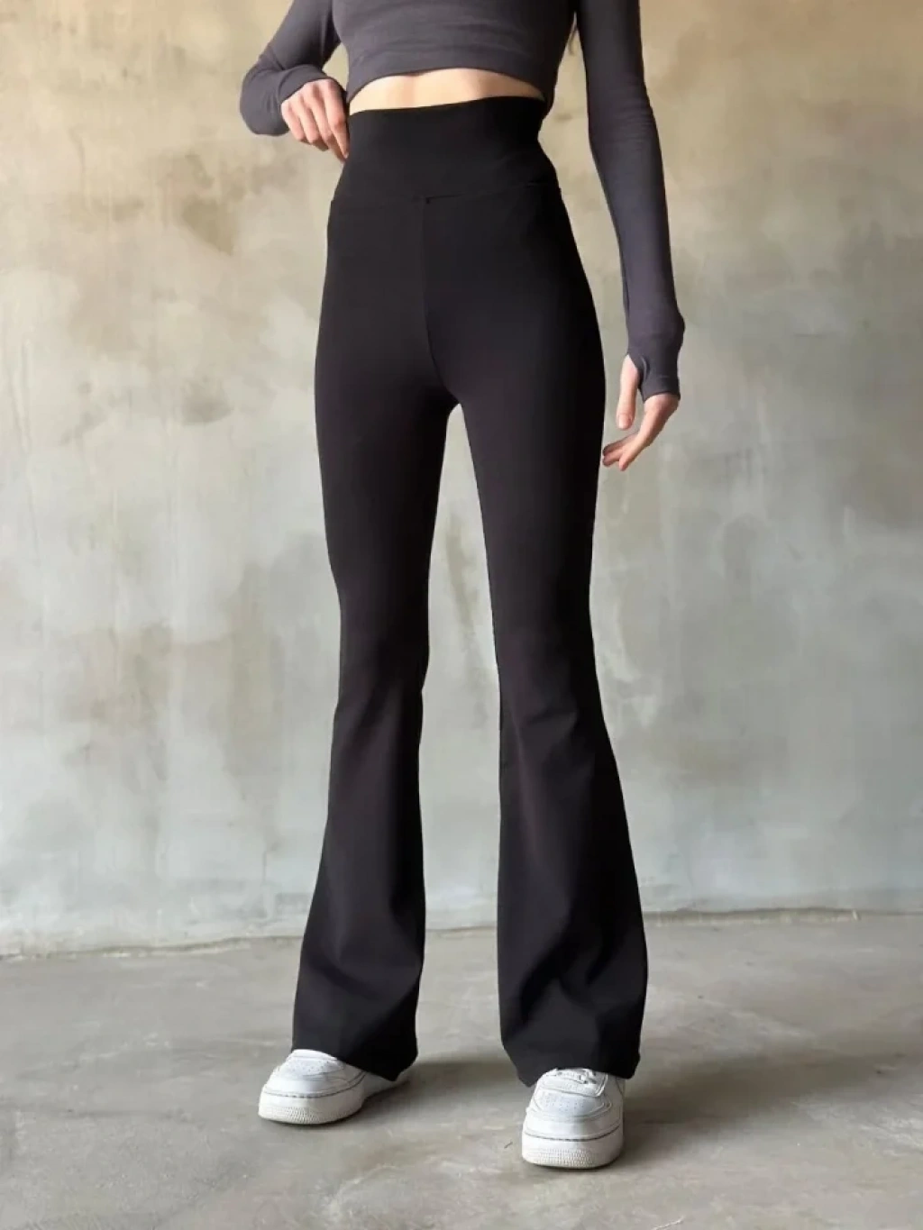 İspanyol Paça Yüksek Bel Tayt - Siyah