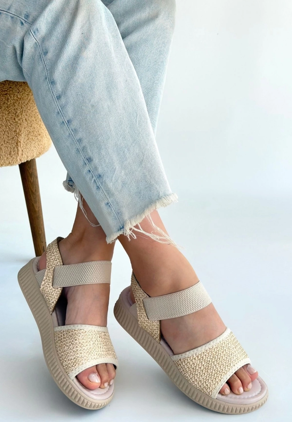 Wayi Bej Hasır Cilt Sandalet