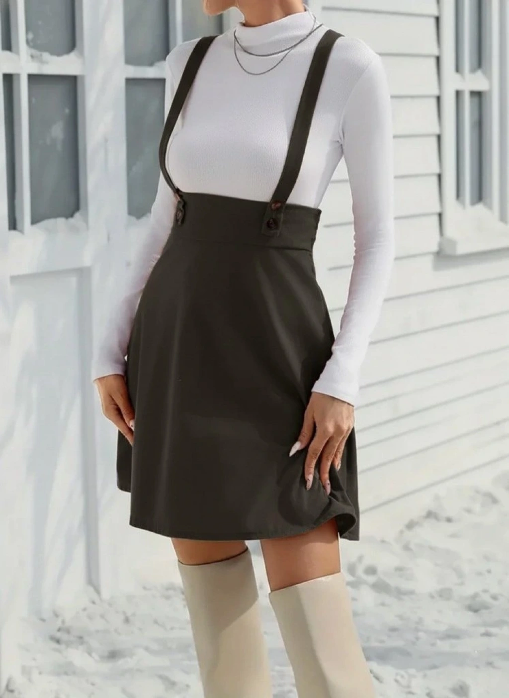 Kadın Askılı Düğmeli Mini Süet Elbise