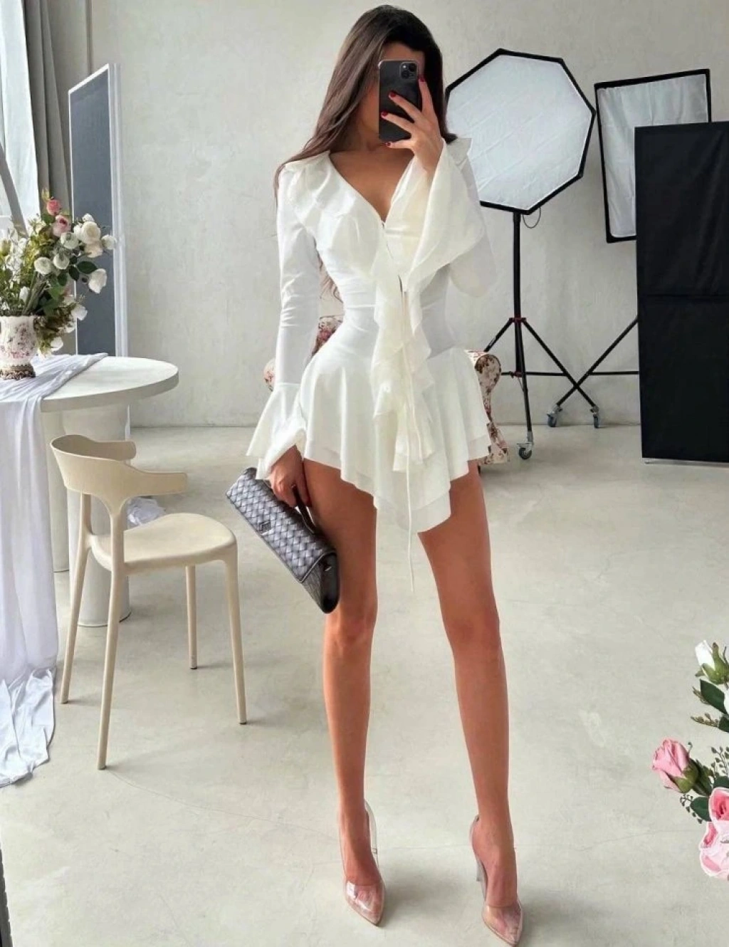 Kadın Dalgıç Kumaş Fırfırlı Elbise