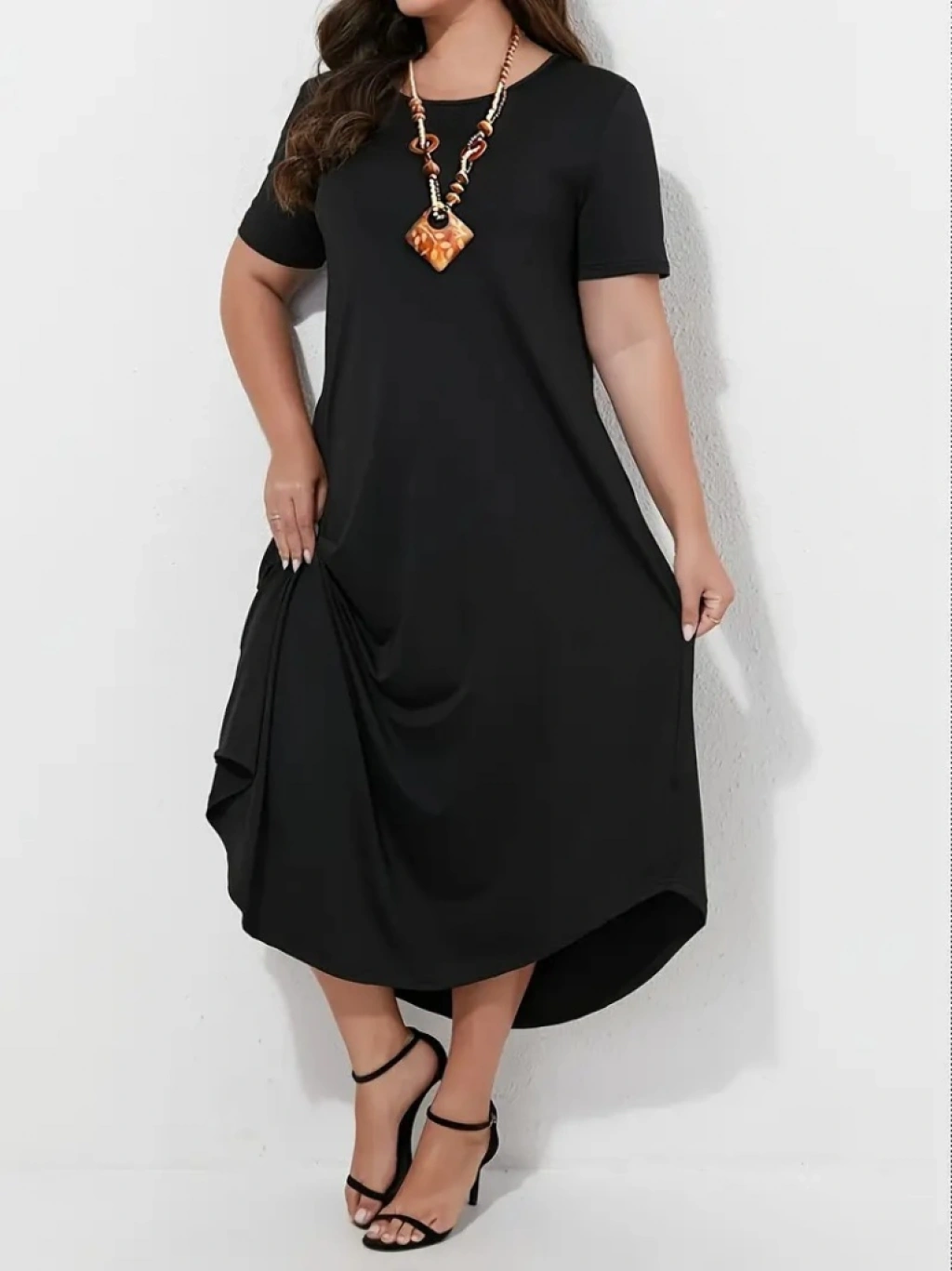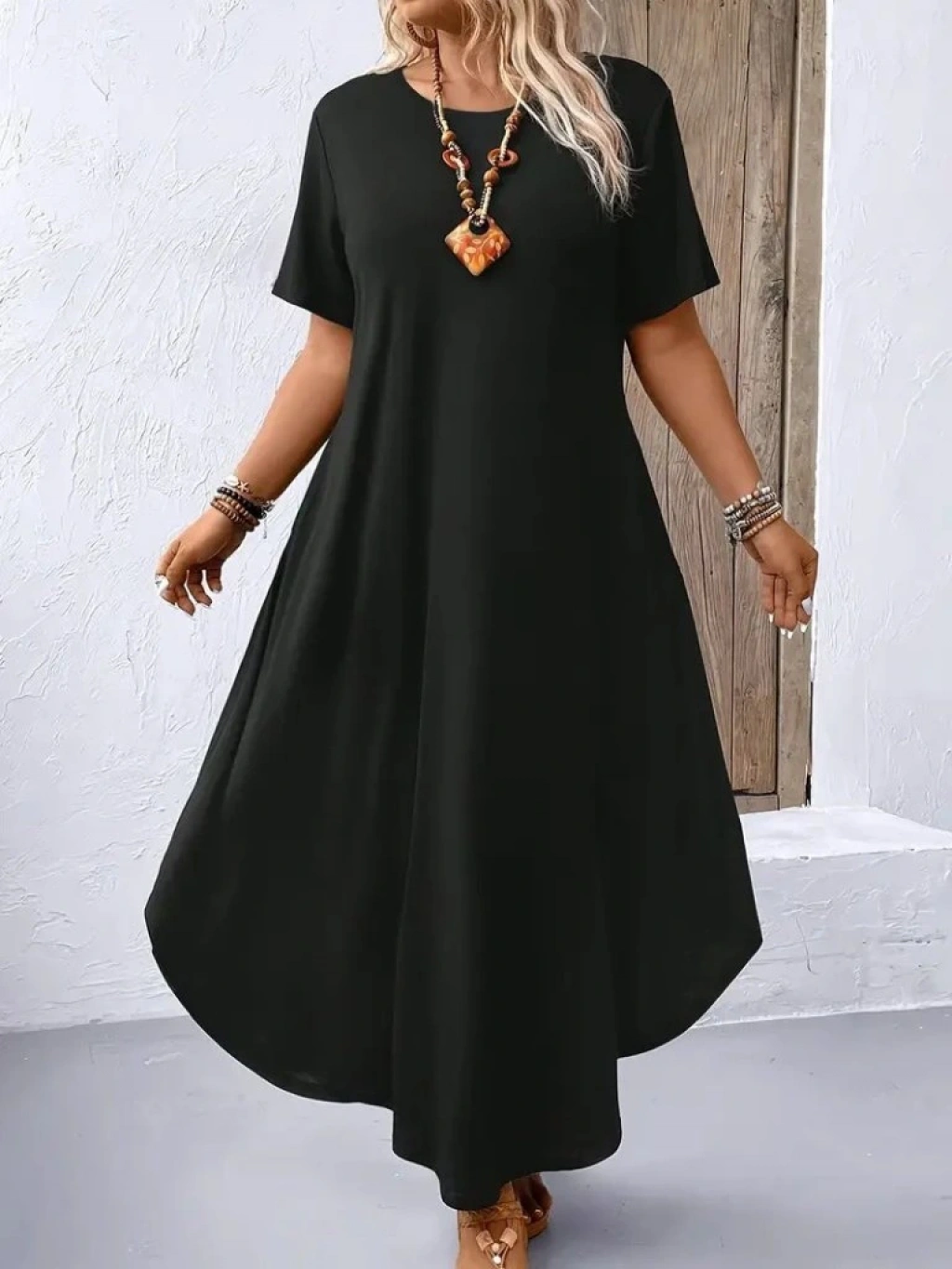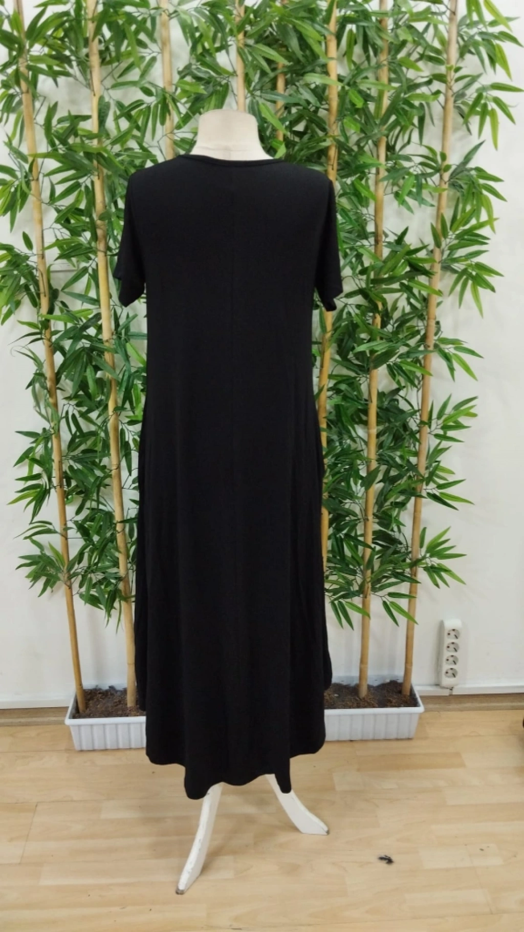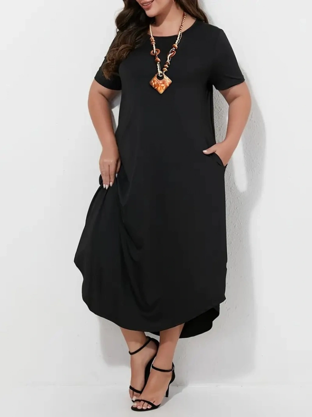 Kadın Kısa Kollu Bisiklet Yaka Cepli Salaş Viskon Elbise