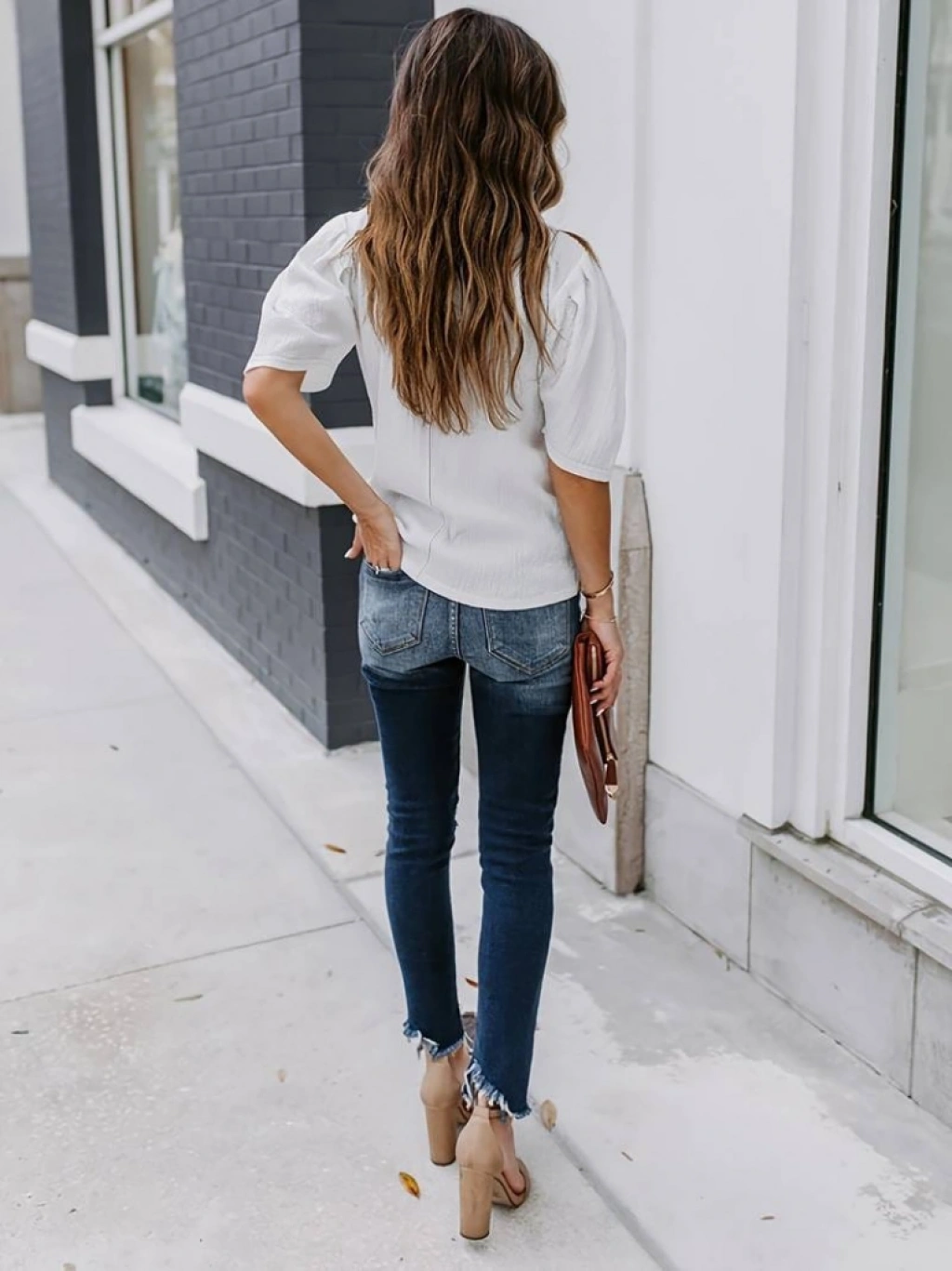 Kadın Kısa Kollu Pileli Balon Kol Bürümcük Bluz