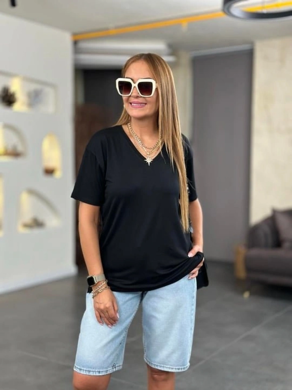 Kadın Kısa Kollu V Yaka Bluz