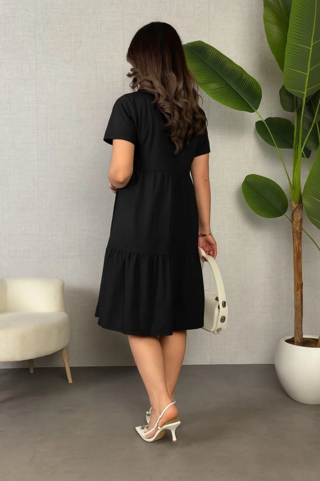 Kadın Kısa Kollu V Yakalı Viskon Elbise