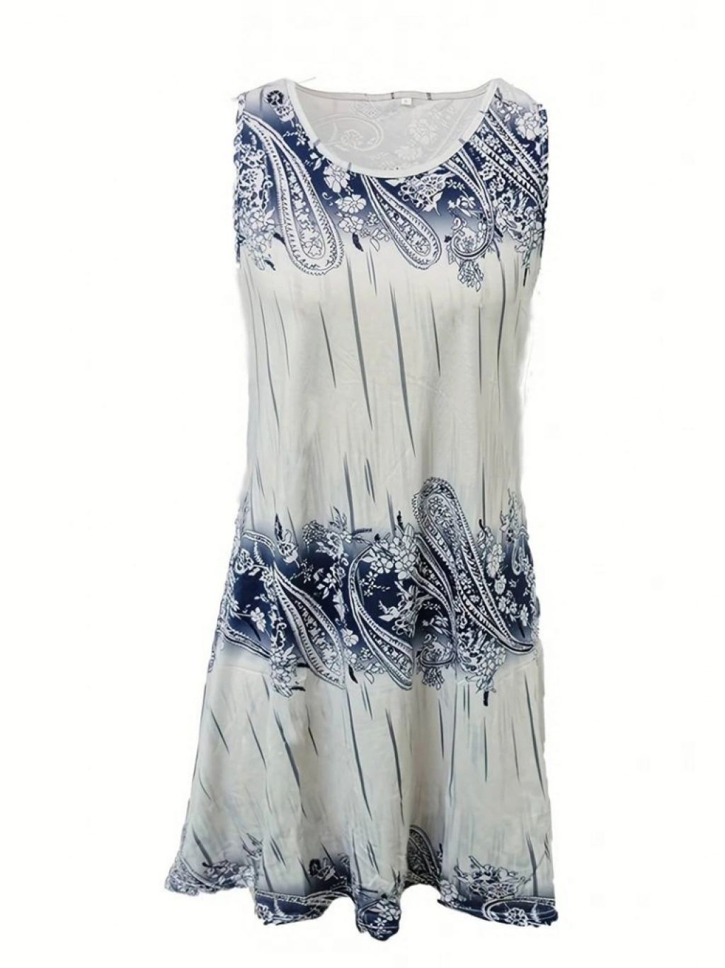 Kadın Kolsuz Bisiklet Yaka Desenli Süprem Elbise