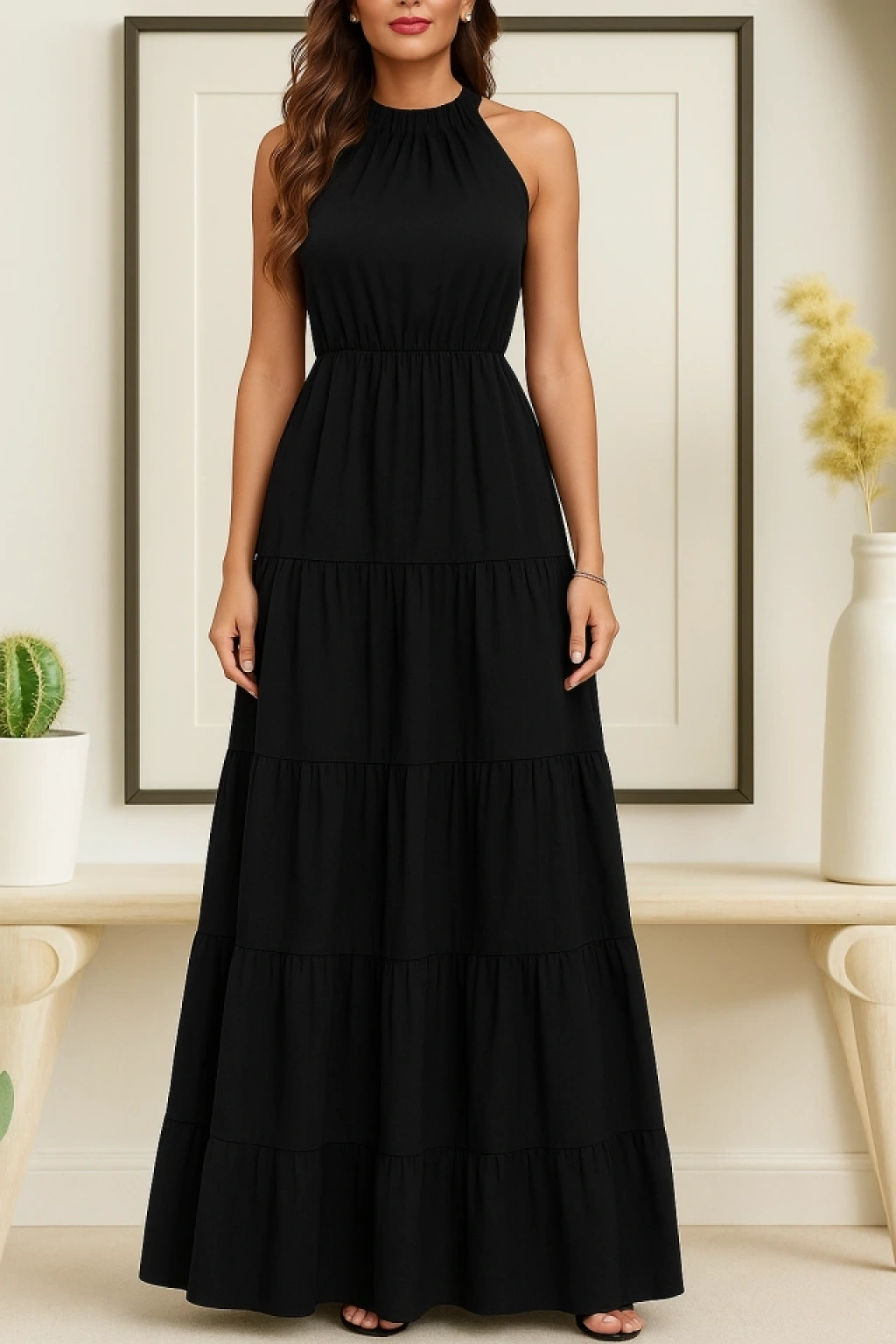 Kadın Kolsuz Halter Yaka Beli Lastiklidesenli Mikro Elbise