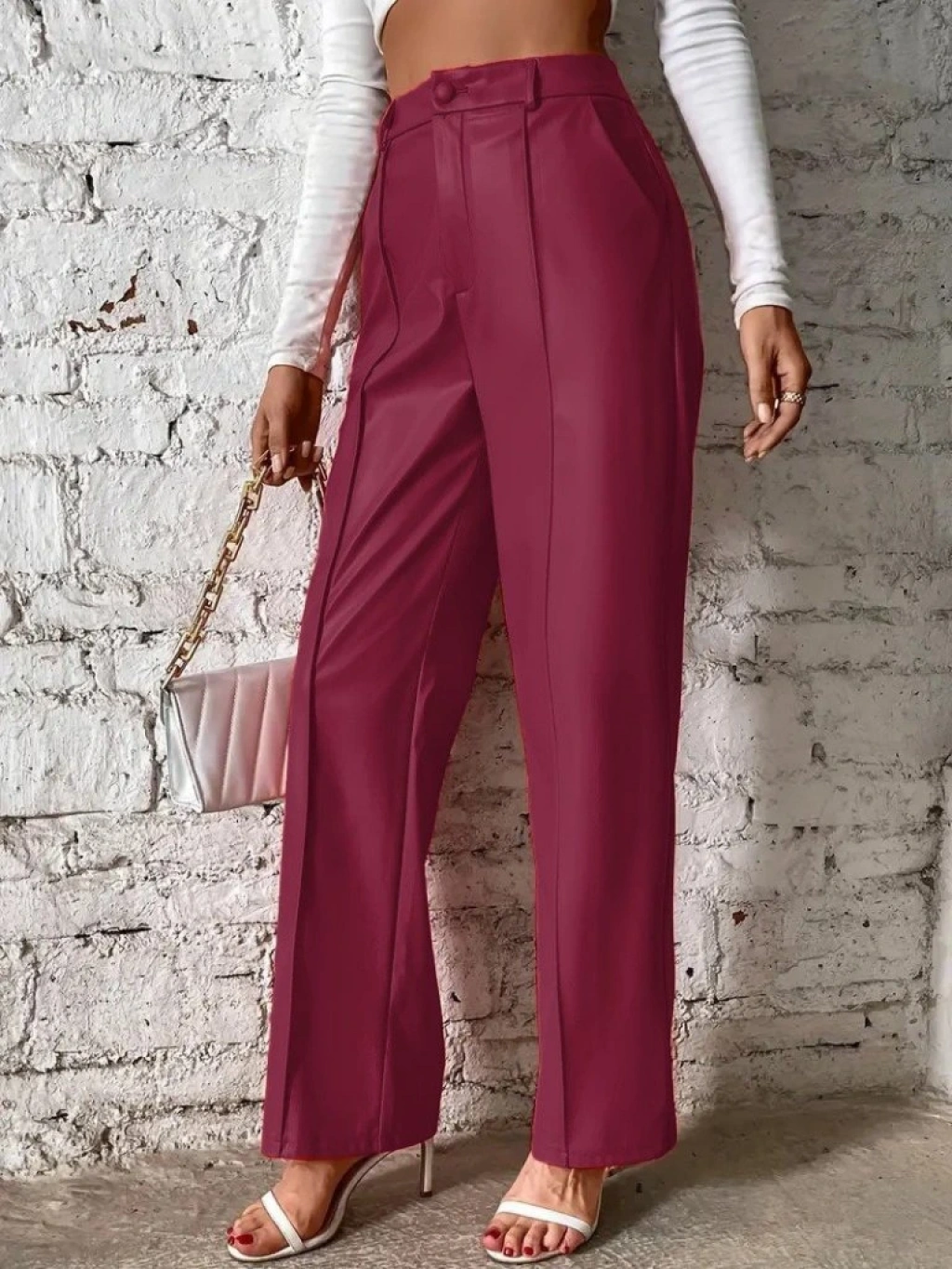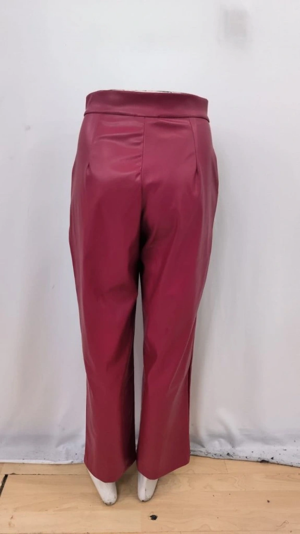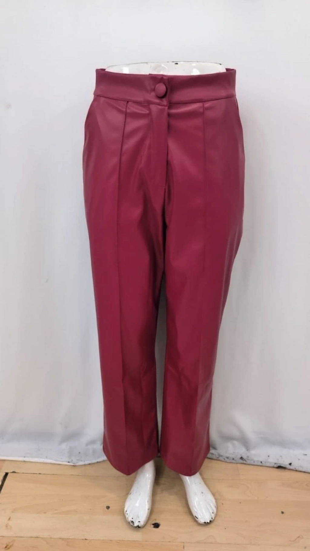 Kadın önden Fermuarlı Cepli Geniş Kesim Lame Deri Pantolon