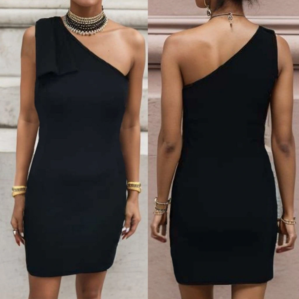 Kadın Tek Omuz Askılı Ek Parça Detay Mini Krep Elbise
