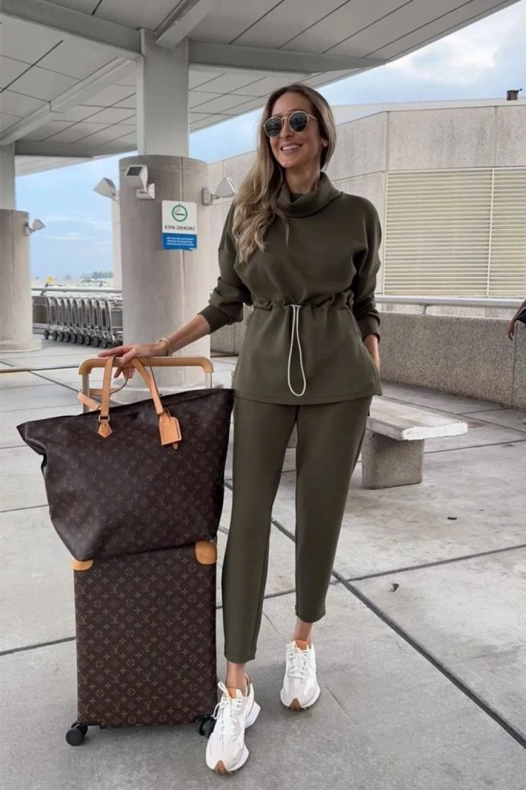 Kadın Uzun Kollu Balıkçı Yaka Belden Lastikli Modal Bluz Ve Pantolon Ikili Takım