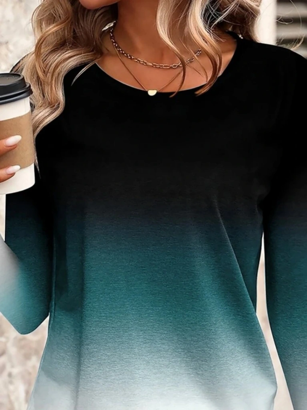 Kadın Uzun Kollu Bisiklet Yaka Desenli Süprem Bluz
