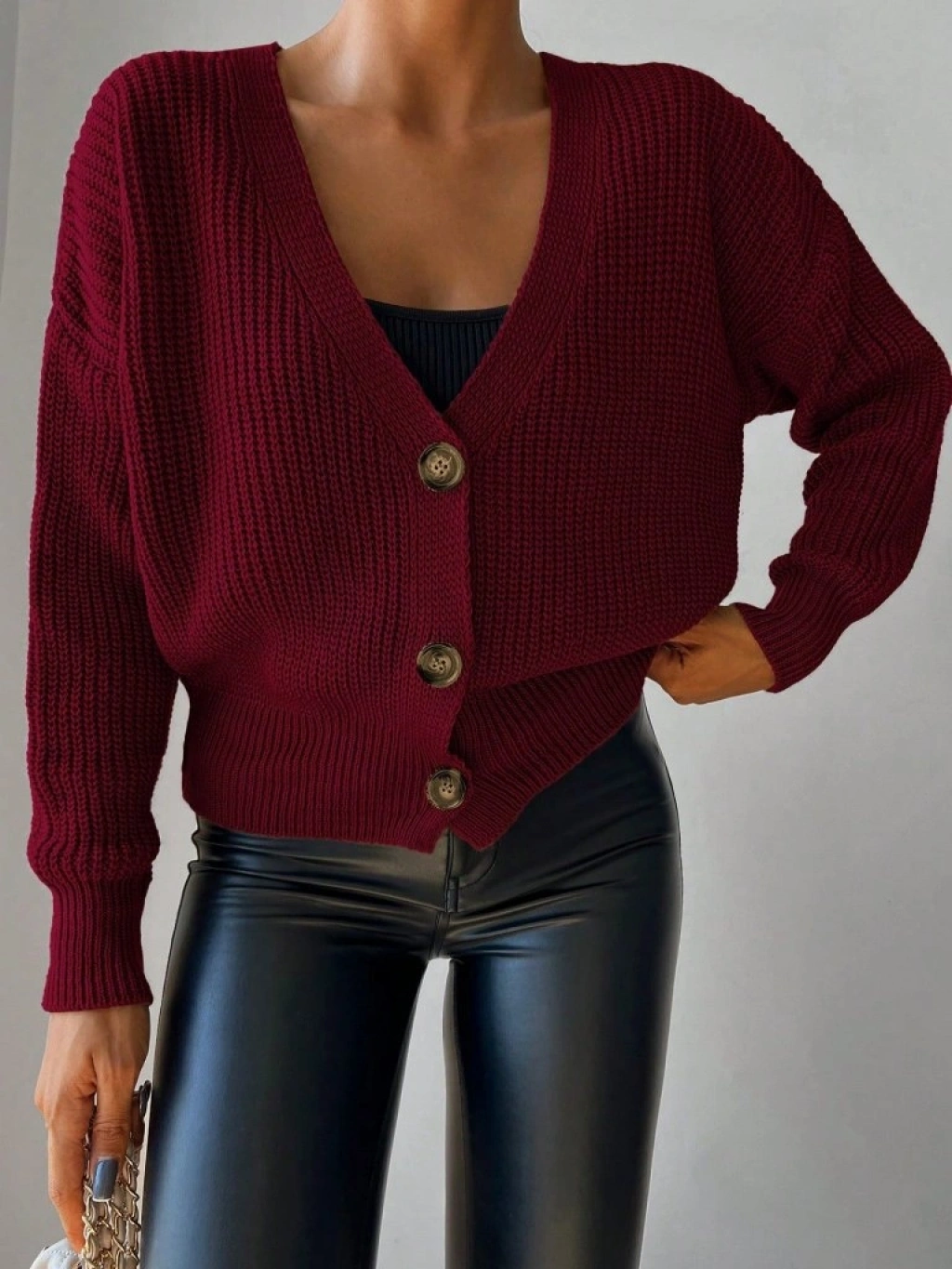 Kadın Uzun Kollu Düğme Detay Triko Bluz