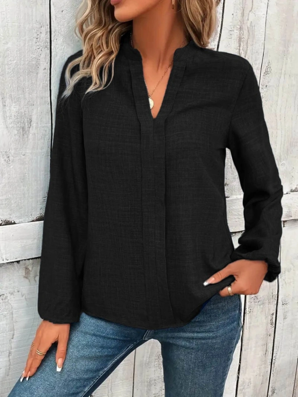 Kadın Uzun Kollu Hakim Yaka Bluz