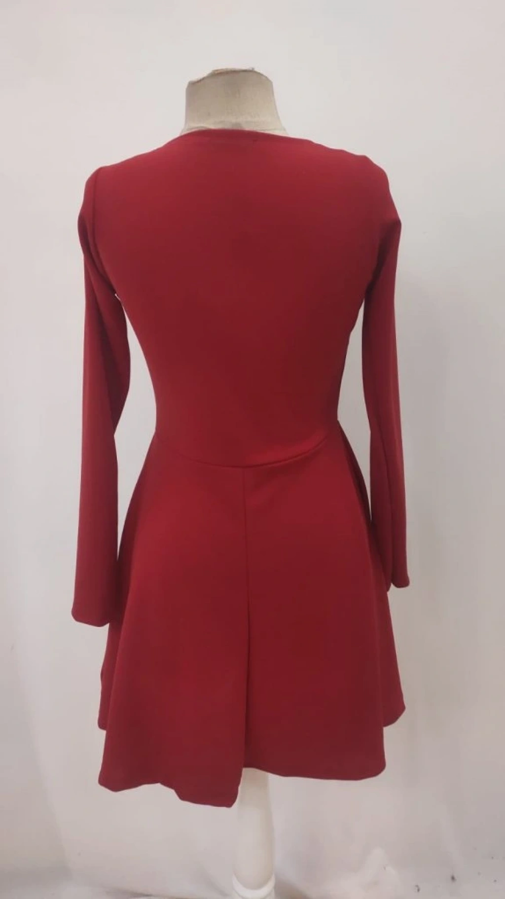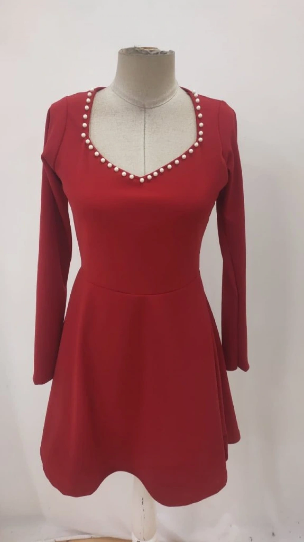 Kadın Uzun Kollu Inci Yakalı Kısa Ithal Krep Elbise