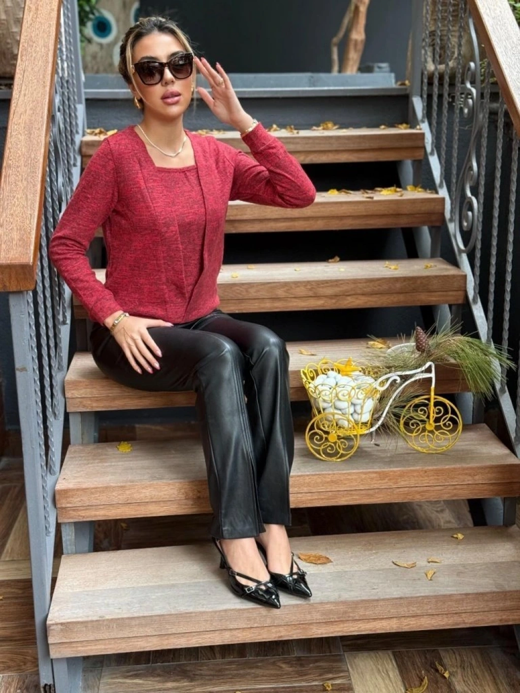 Kadın Uzun Kollu Kruvaze Yaka Kol Ve Etek Ucu Manşet Detay Yumoş Bluz