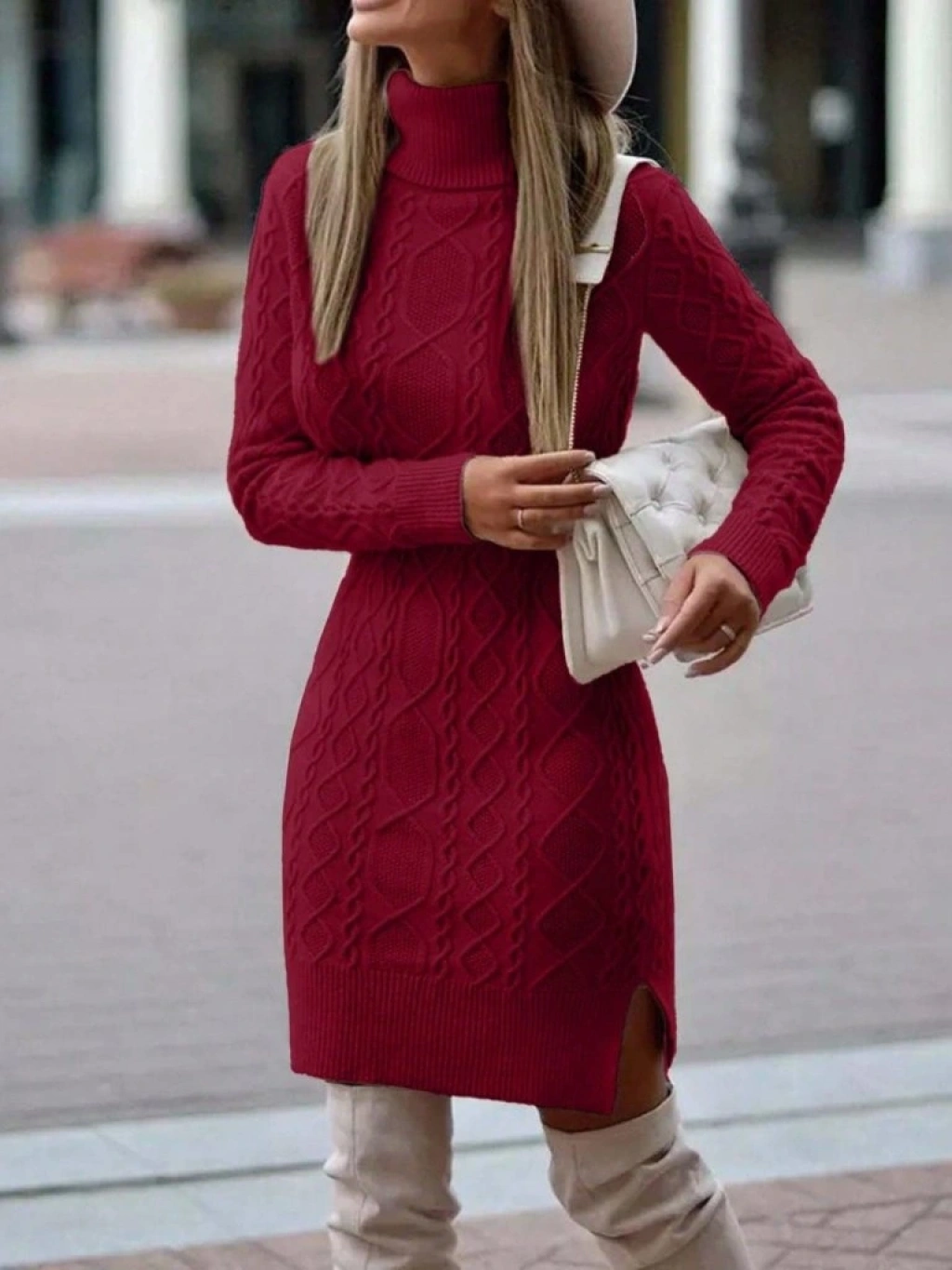 Kadın Uzun Kollu Loren Yünlü Motifli Midi Boy Triko Elbise