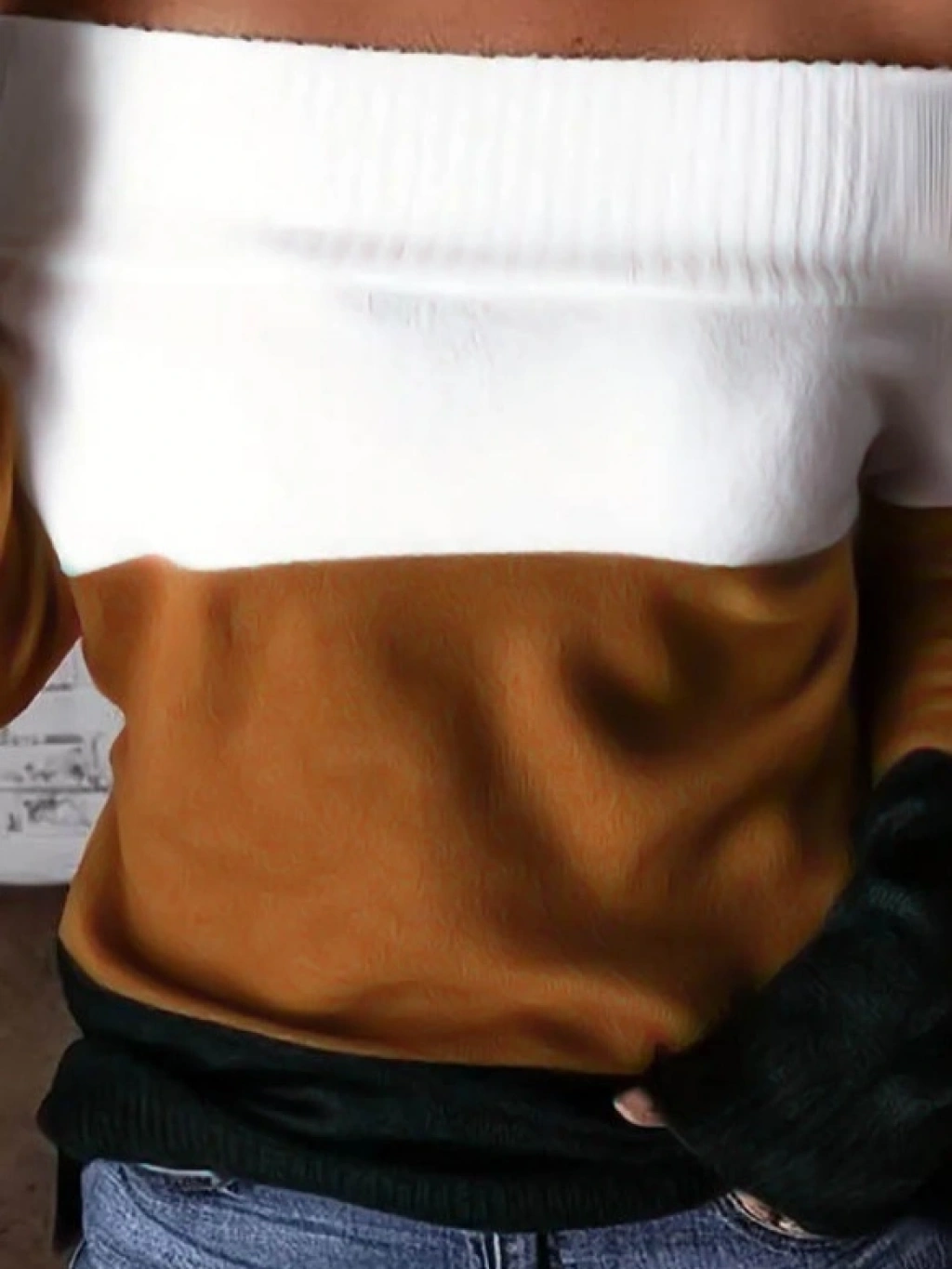 Kadın Uzun Kollu Omuzlardan Açık Uzun Kollu Blok çizgili Triko Bluz