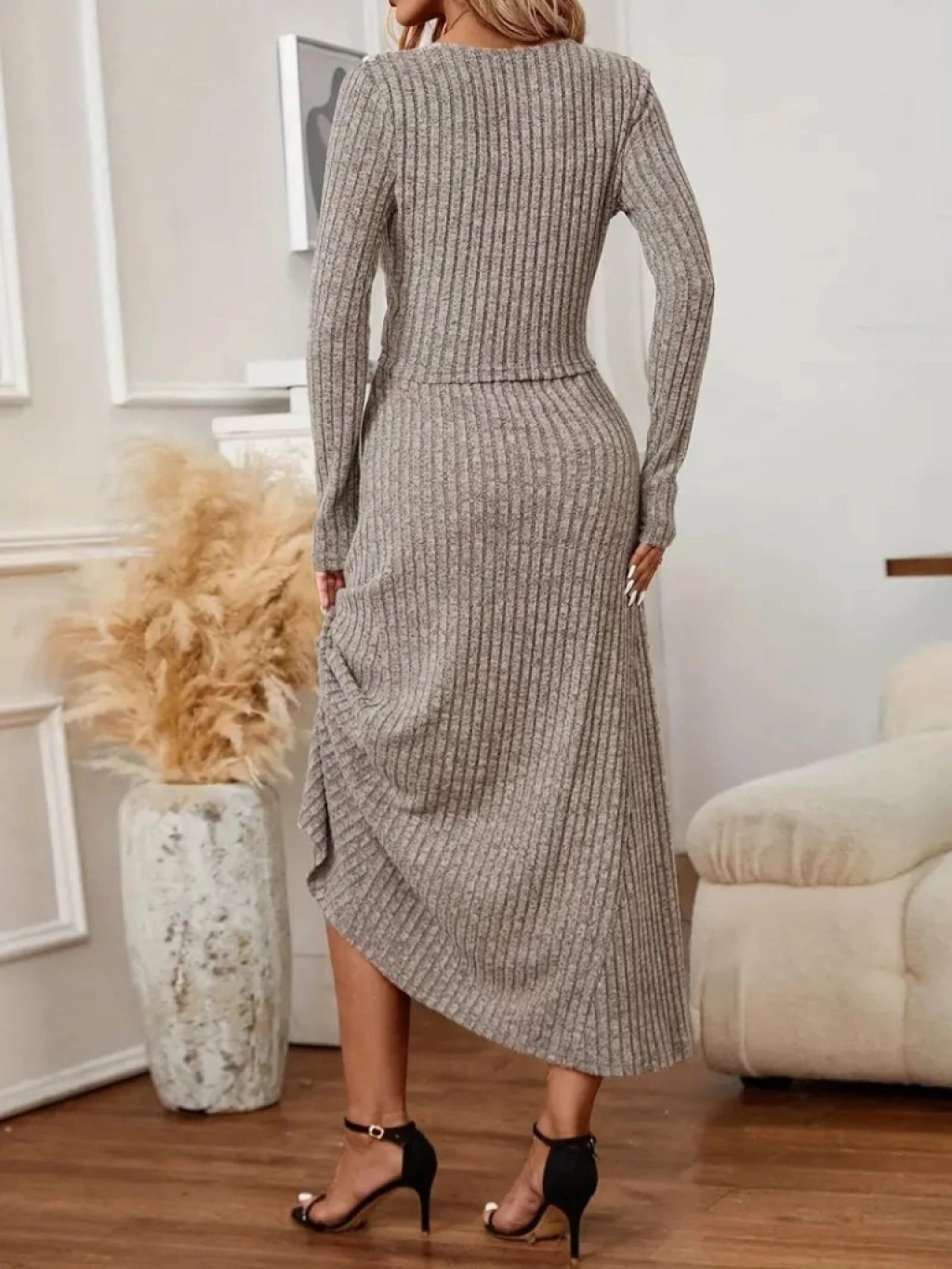 Kadın Uzun Kollu önden Düğmeli Bluz Ve Yüksek Bel A Kesim Uzun Etek şardonlu Kaşkorse Ikili Takım