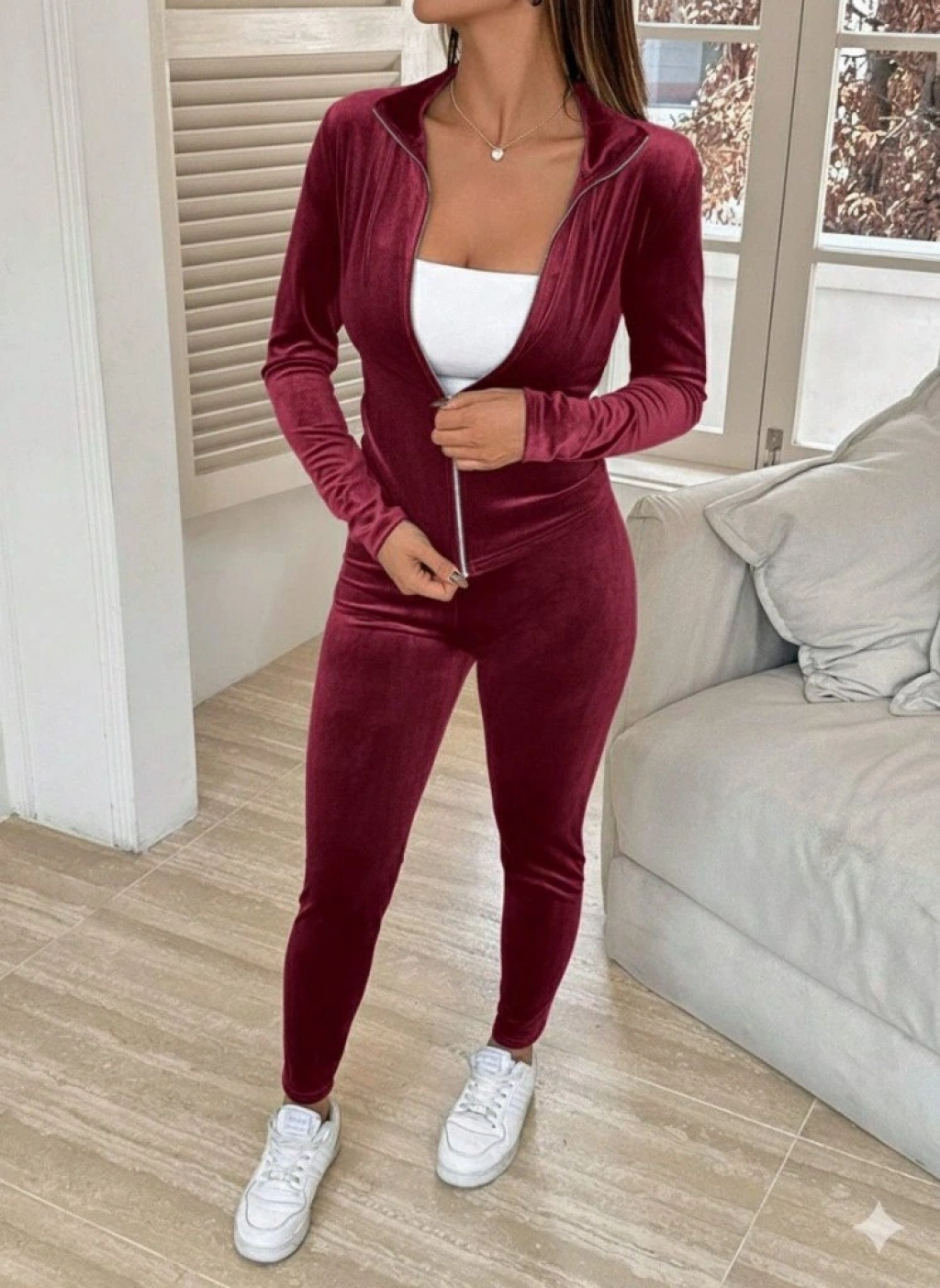 Kadın Uzun Kollu önden Fermuarlı Kadife Bluz Ve Pantolon Ikili Takım