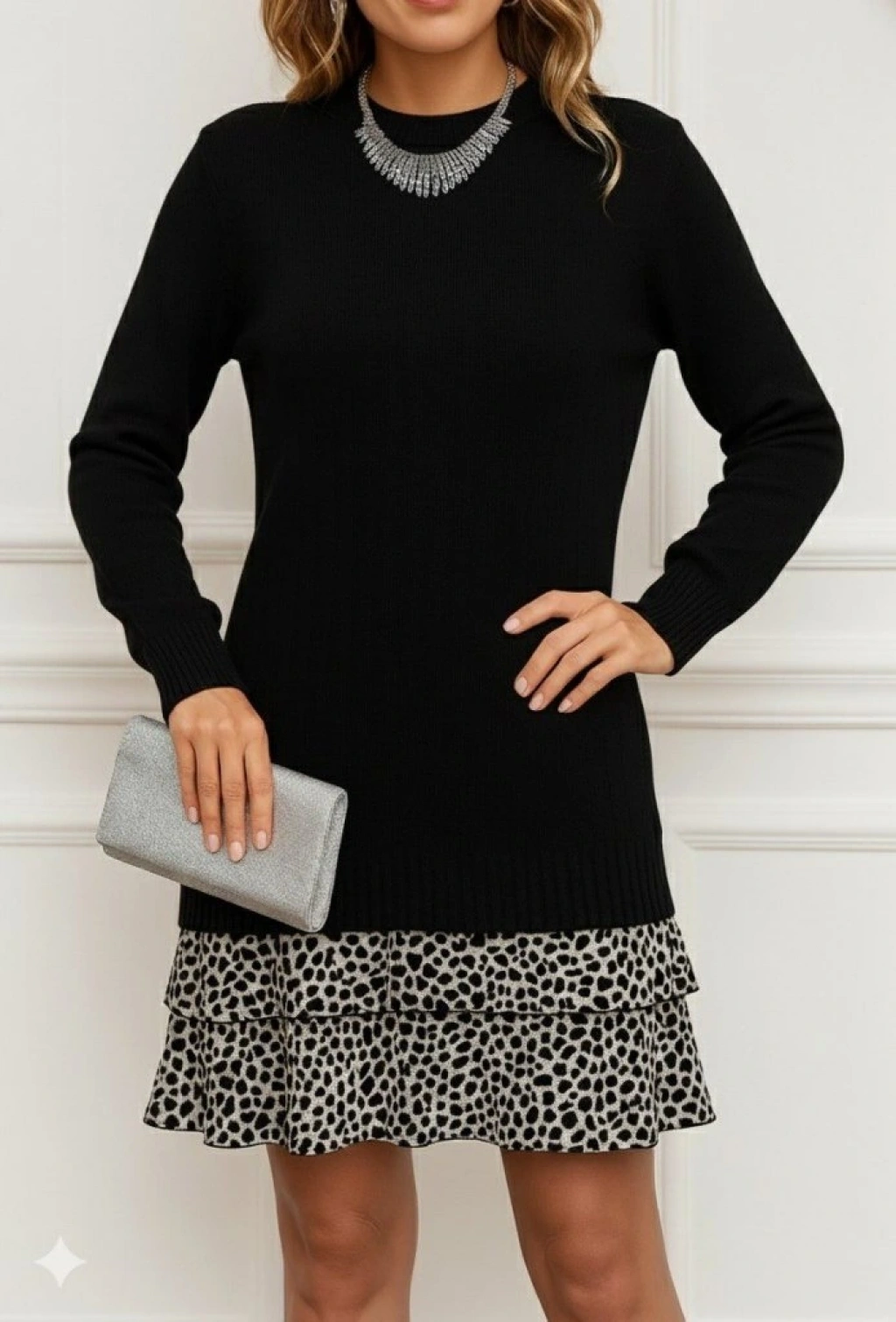 Kadın Uzun Kollu üst şardonlu Kaşkorse Alt Süprem Desenli Elbise