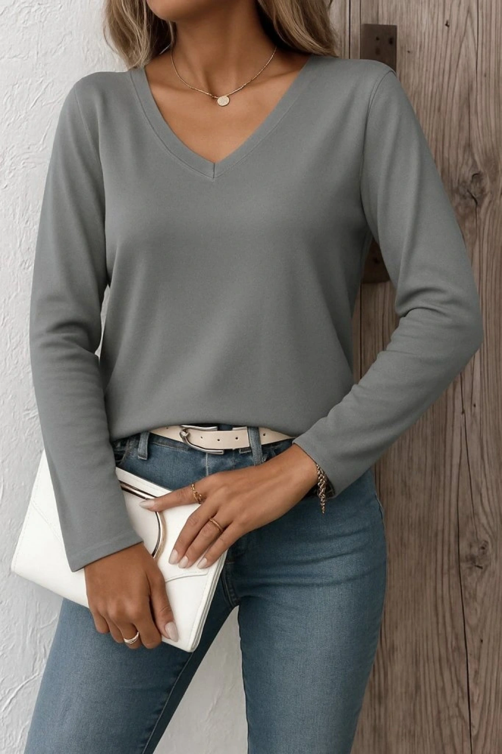 Kadın Uzun Kollu V Yaka Triko Bluz