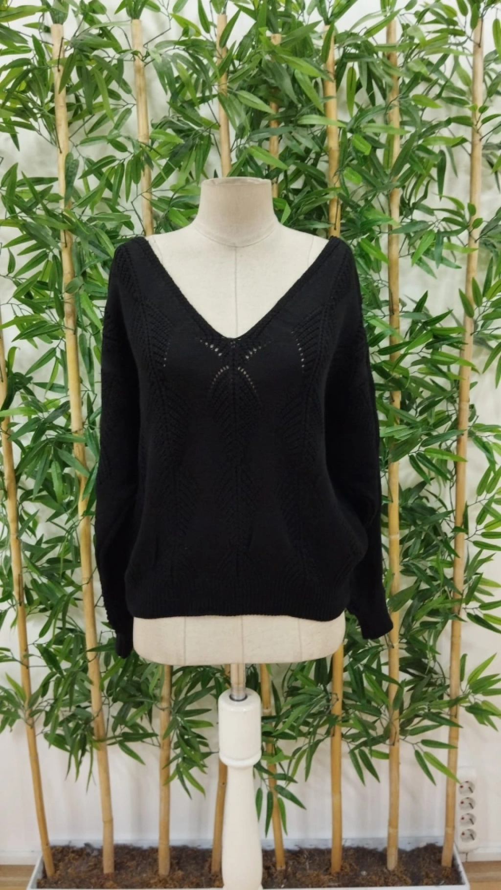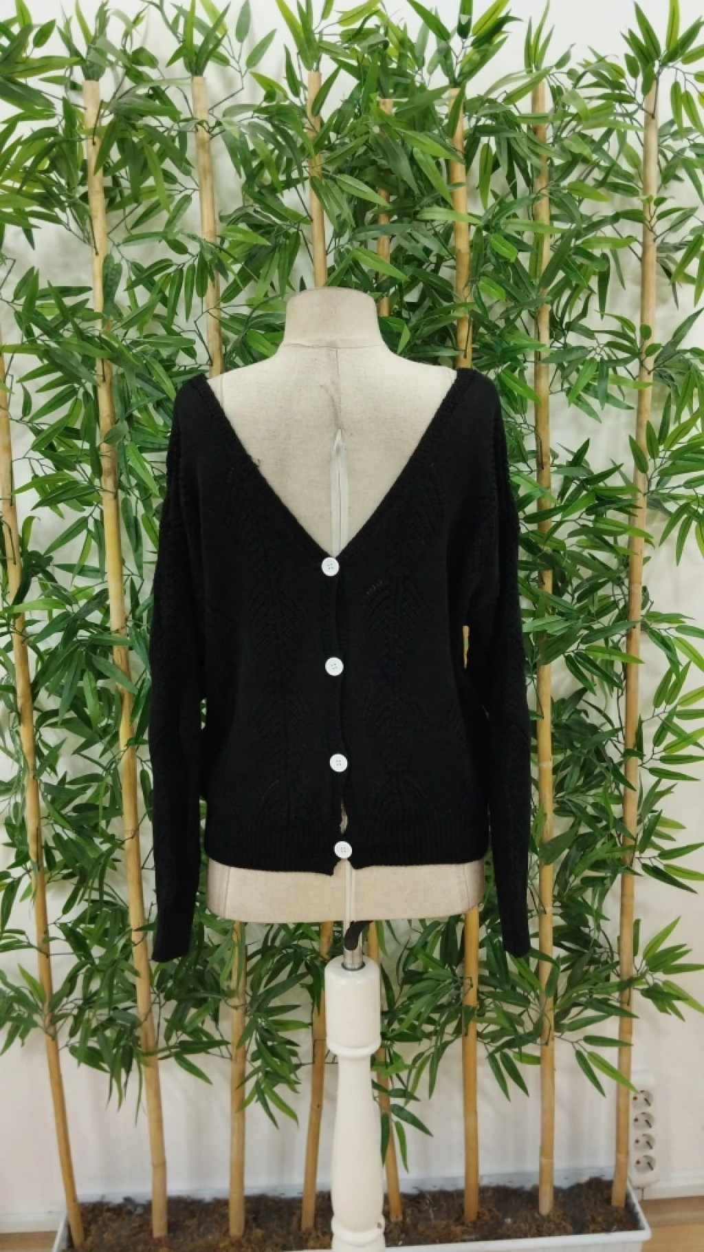 Kadın Uzun Kollu V Yakalı Arkası Düğmeli Triko Bluz
