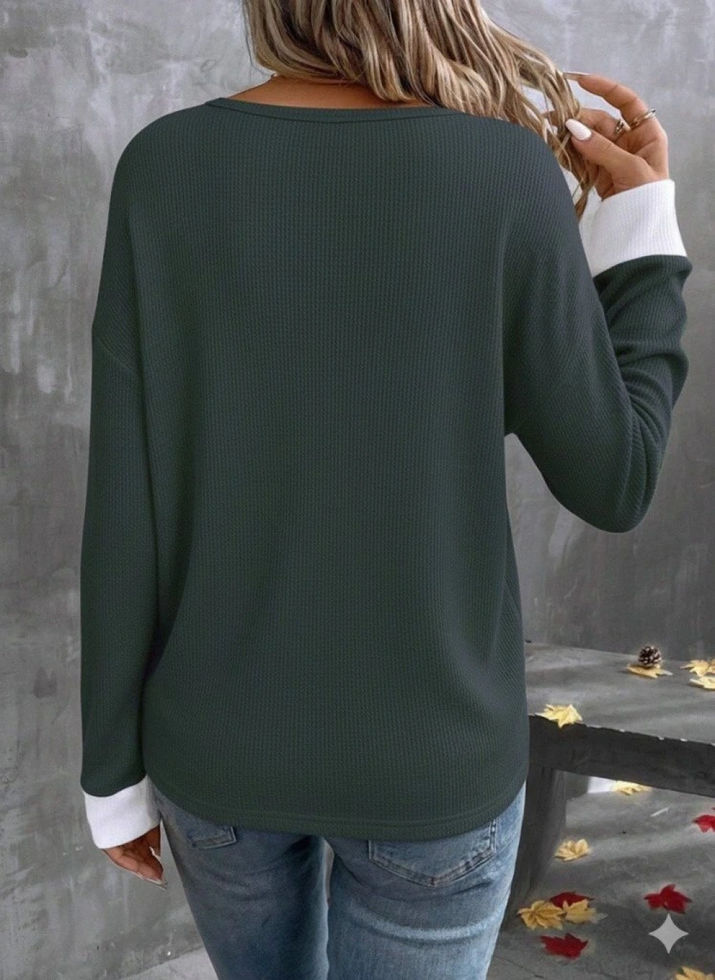 Kadın Uzun Kollu V Yakalı Waffle Bluz